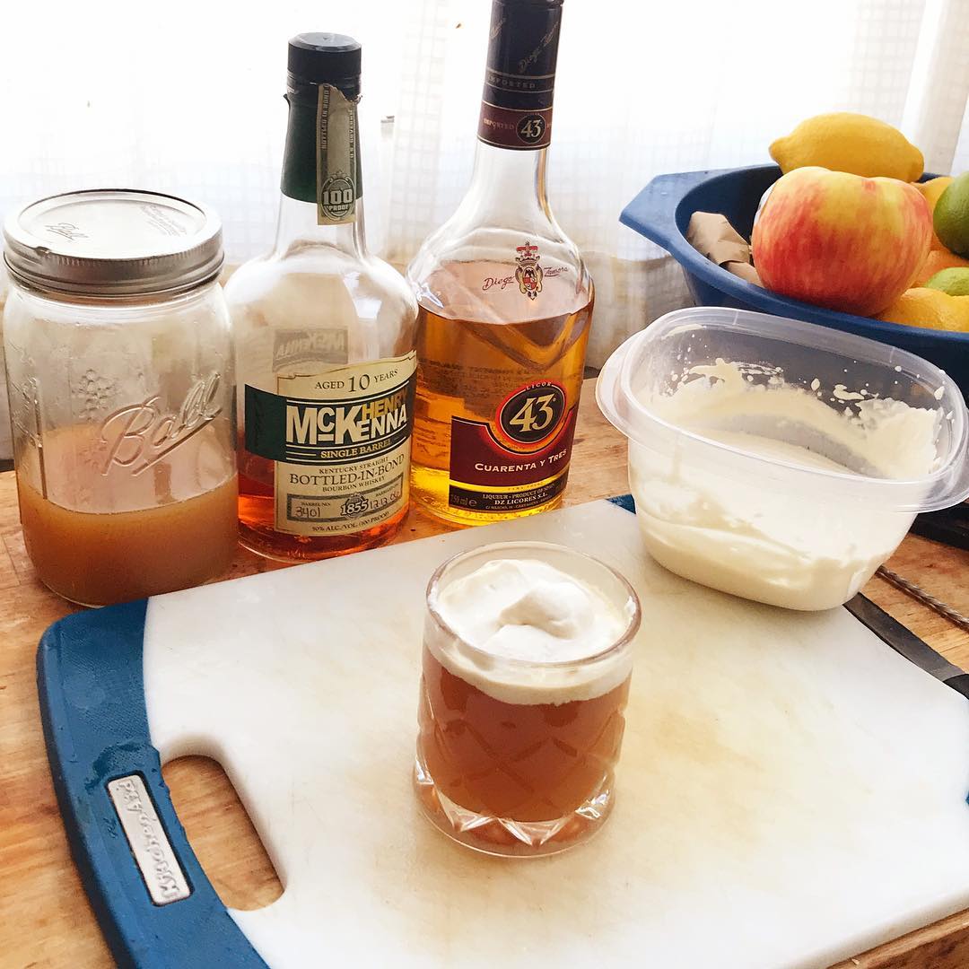 The baking spice and cinnamon notes in the bourbon combine with the vanilla notes in the Licor 43 and the spiced apple cider to taste like a slice of apple pie pie with a scoop of vanilla ice cream