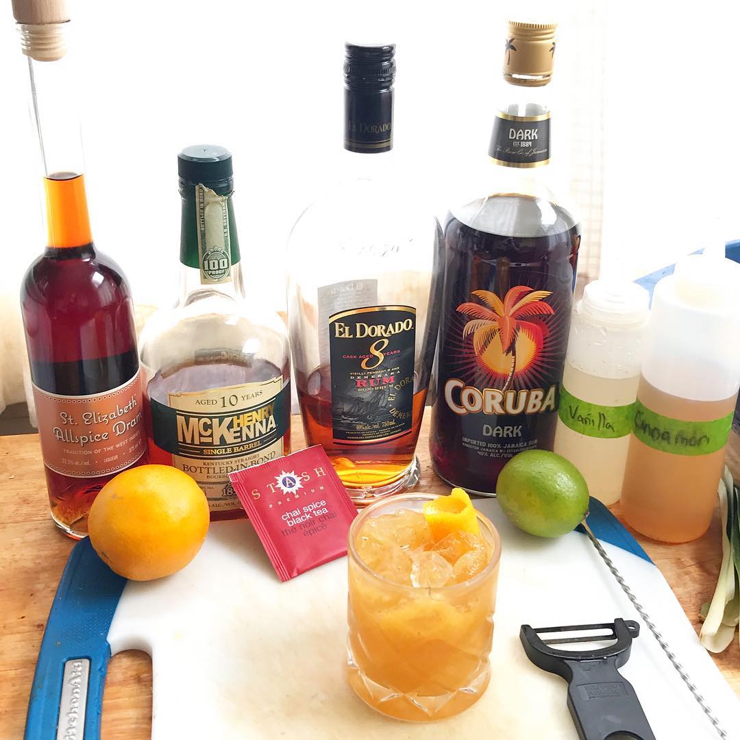 The chai, cinnamon, vanilla, and Allspice flavors work very nicely with the bright orange juice and the bourbon pairs with the rums to give a nice, rounded base flavor for the spices and citrus to play with