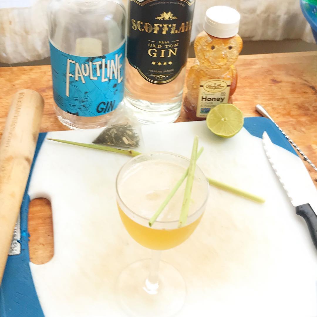 The aromatic green tea contributes floral notes and a touch of bitterness that complements the bright, citrusy muddled lemongrass while the honey syrup adds nuanced sweetness, the gins add some oomph and botanical notes (using more Old Tom than New American also reduces the influence of juniper on the flavor), and the lime adds refreshing citrus. 1.5 oz Vodka can be subbed for the two gins, but I like the extra flavors from the blend of gins below