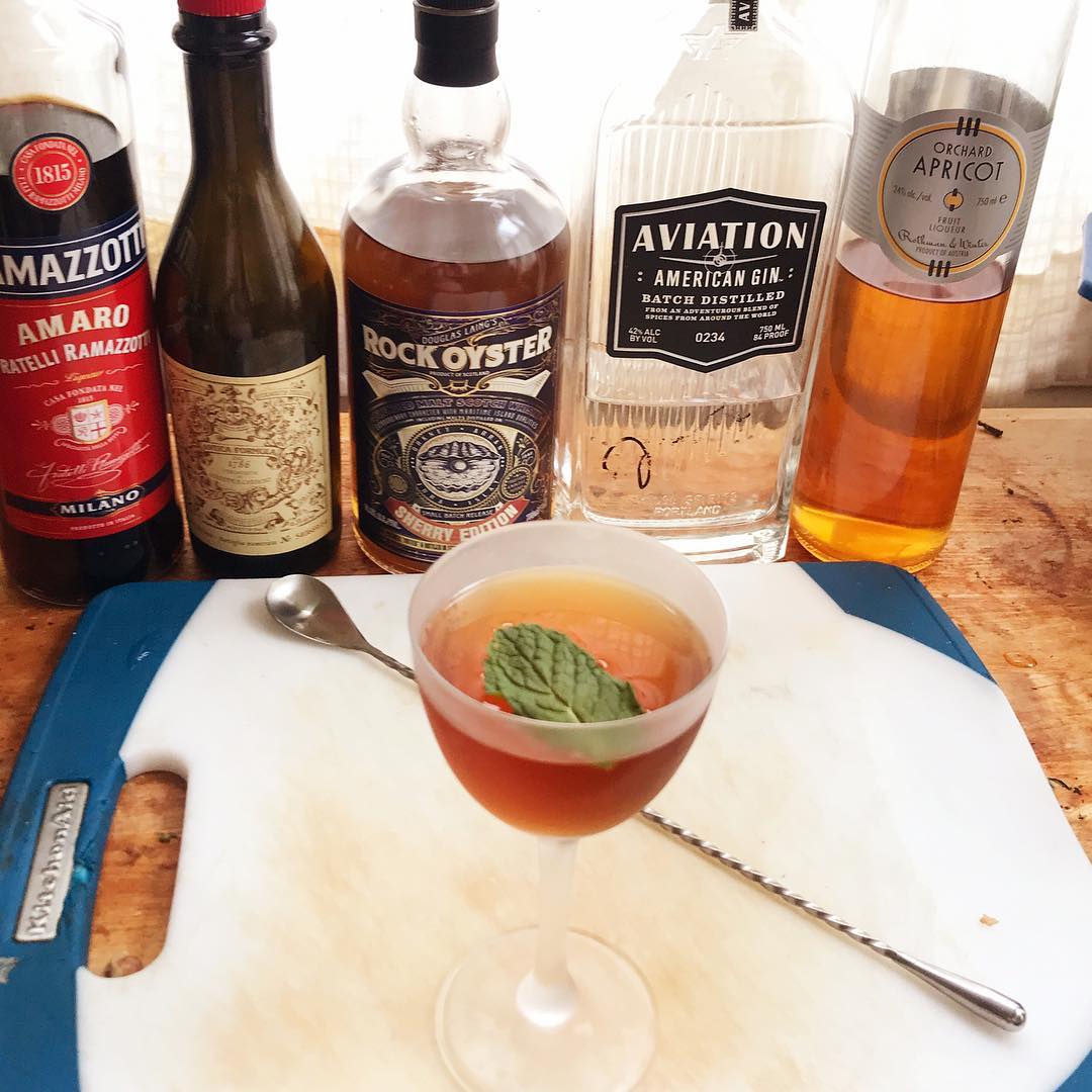 The Scotch has a subtle peat flavor while also bringing notes of heather/honey/sherry which blends really well with the apricot flavor from the liqueur. Meanwhile, the rich, spicy New American Gin subs for the more traditional Old Tom gin and its flavors work well with both the scotch and the cola and vanilla notes in the Sweet Vermouth and the bittersweet, almost root-beer like notes of the Amaro