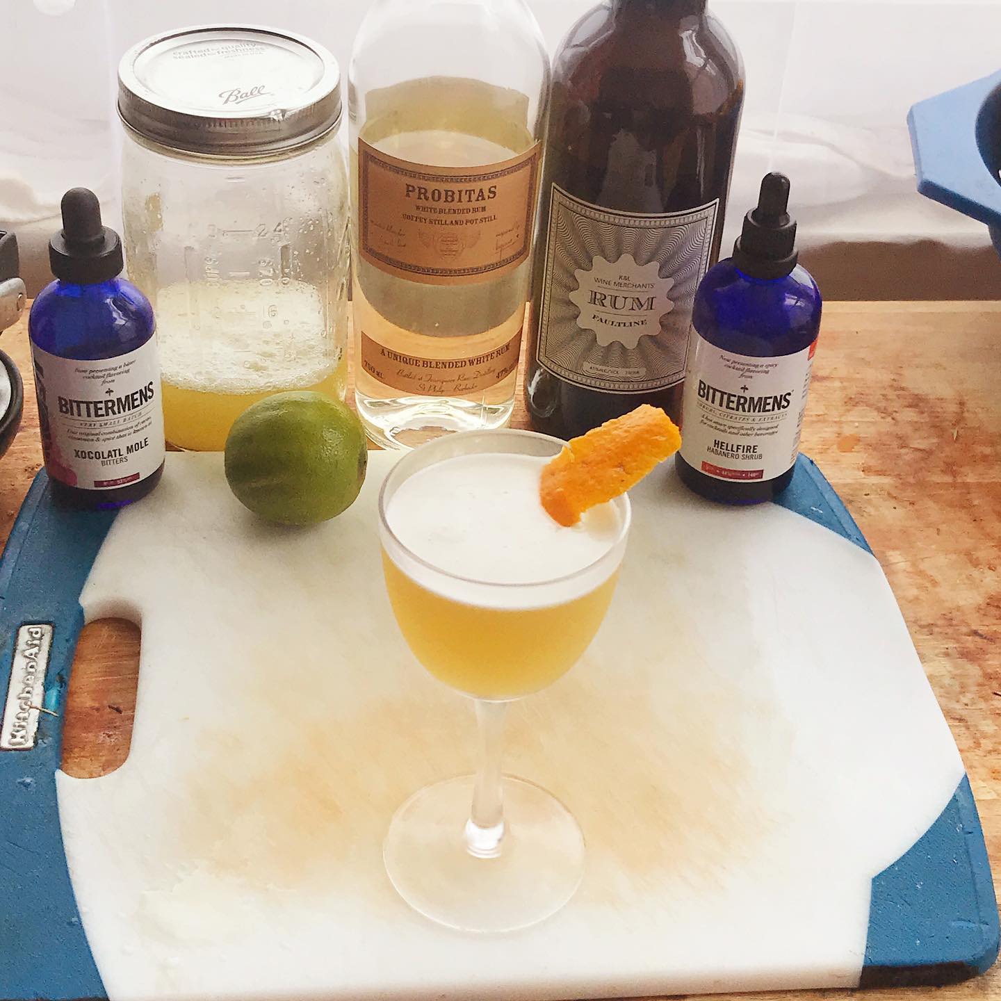 The tropical funk, molasses, and spice notes from the blend of rums from Barbados, Jamaica, and St Lucia provide a flavorful base that is supplemented by the island friendly citrus blend of lime and pineapple juice (with some essential oils from the orange twist) while the Habanero and chocolate mole bitters and finishing notes of spice and cacao