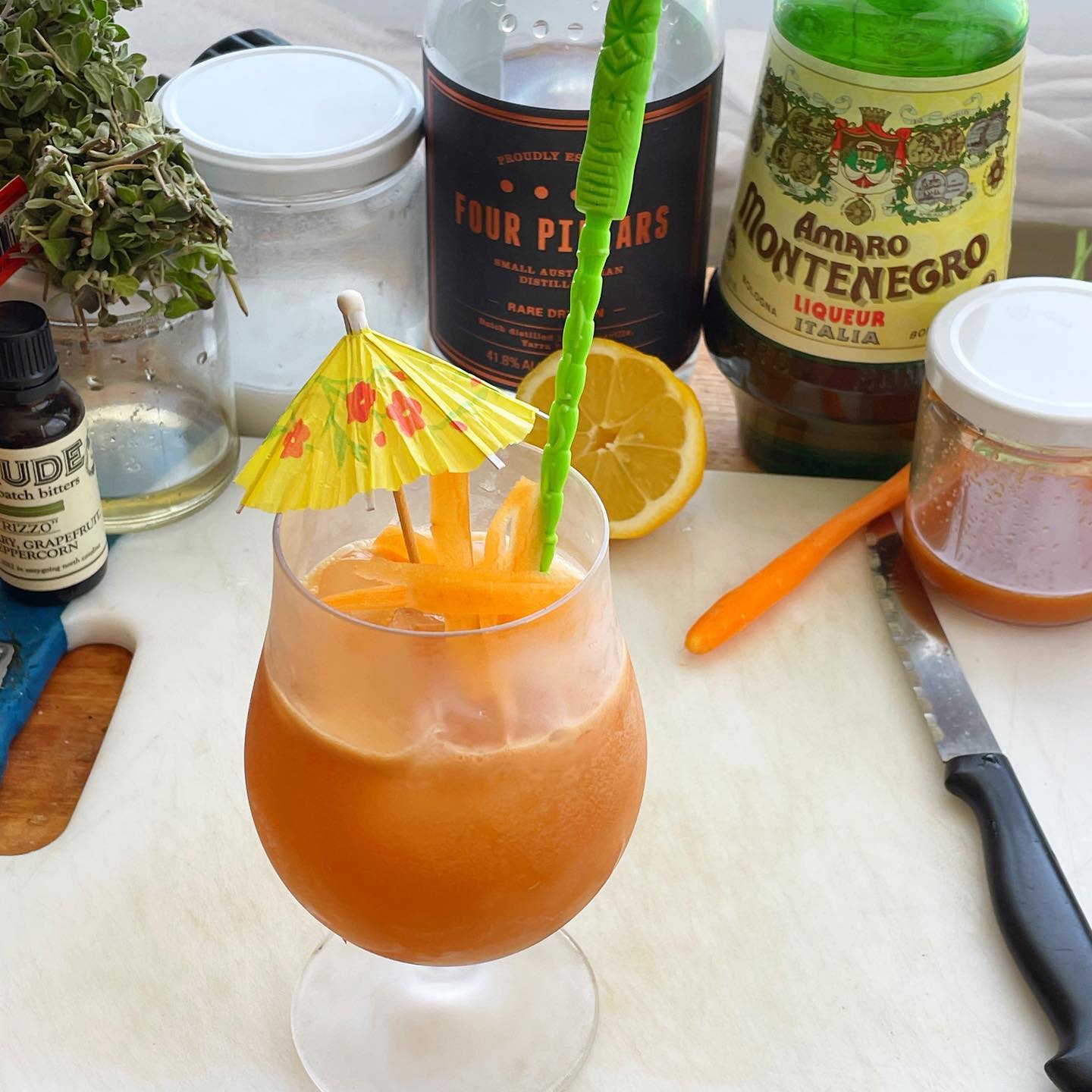 A refreshing, garden-forward riff on the Pina Colada from excellent LA bartender Christine Wiseman with a nice balance of sweetness, spice, and citrus 🥕🥥🍋🍹