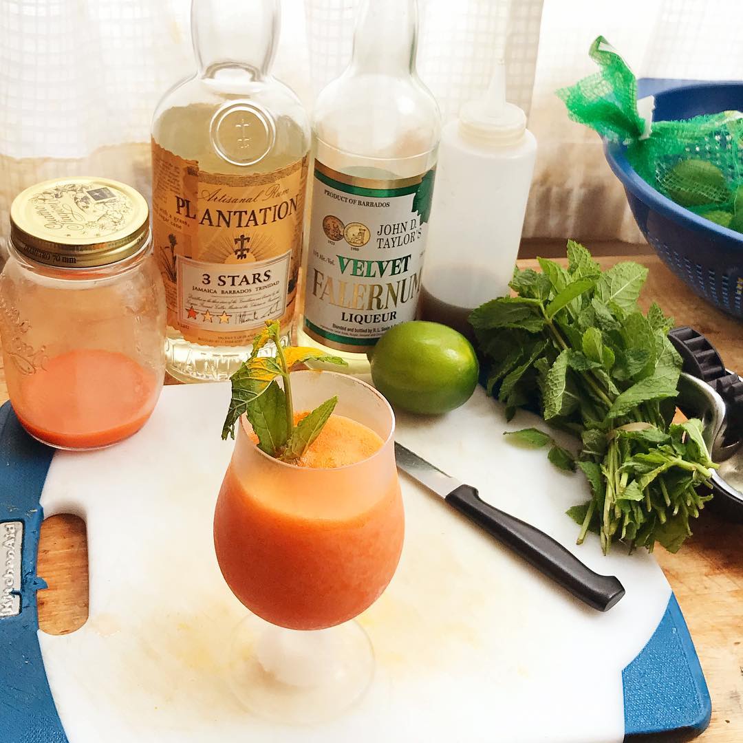 The earthy sweetness of the carrot juice is a great foil for the spices in the falernum and is offset by the ripe fruit and molasses notes in the rum and the tart lime juice