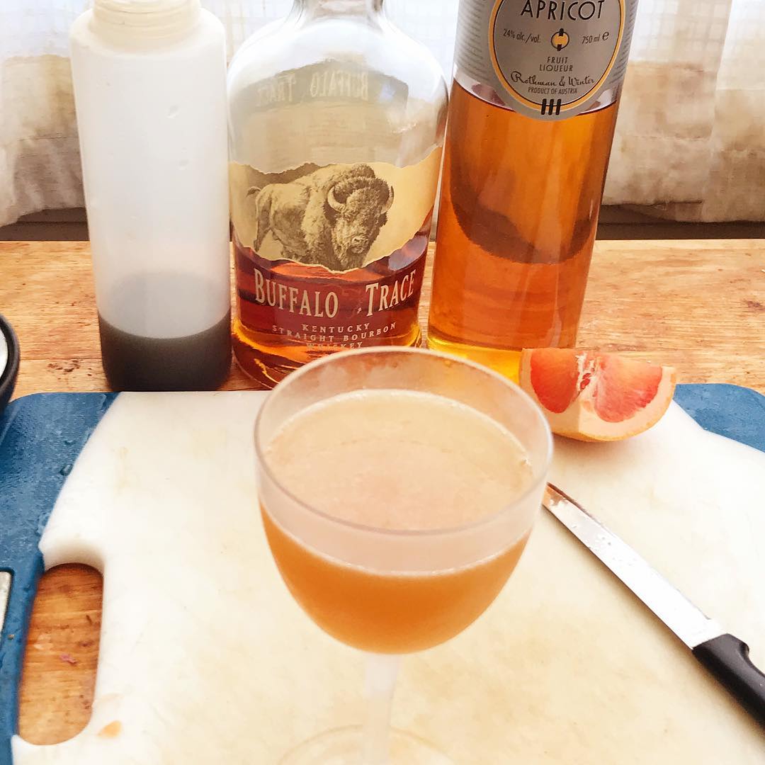 A tasty riff on a Brown Derby/Whiskey Sour that uses grapefruit and apricot from Anu Apte-Elford of Seattle’s Rob Roy