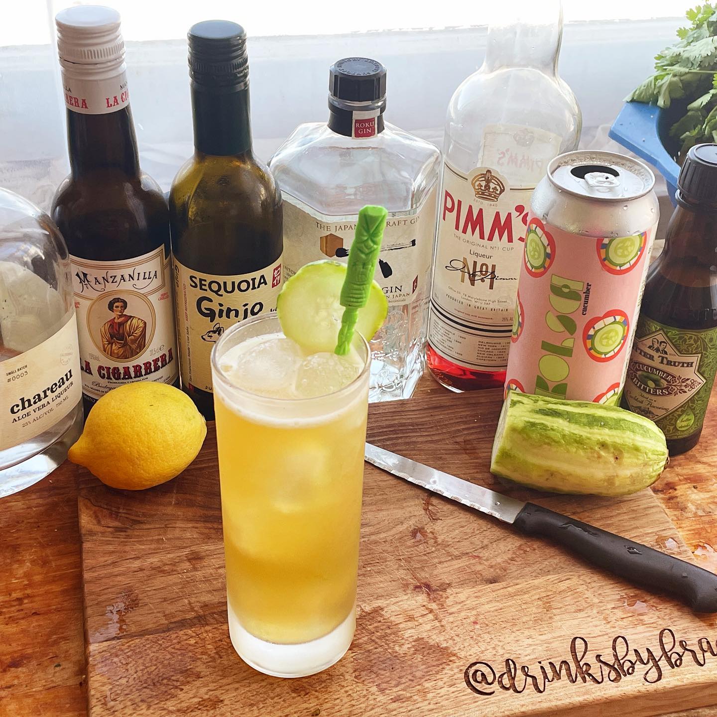 A refreshing, summery hybrid Pimm’s Cup/Beer Cocktail riff with notes of citrus and the summer garden 🍹🥒🍋🍈