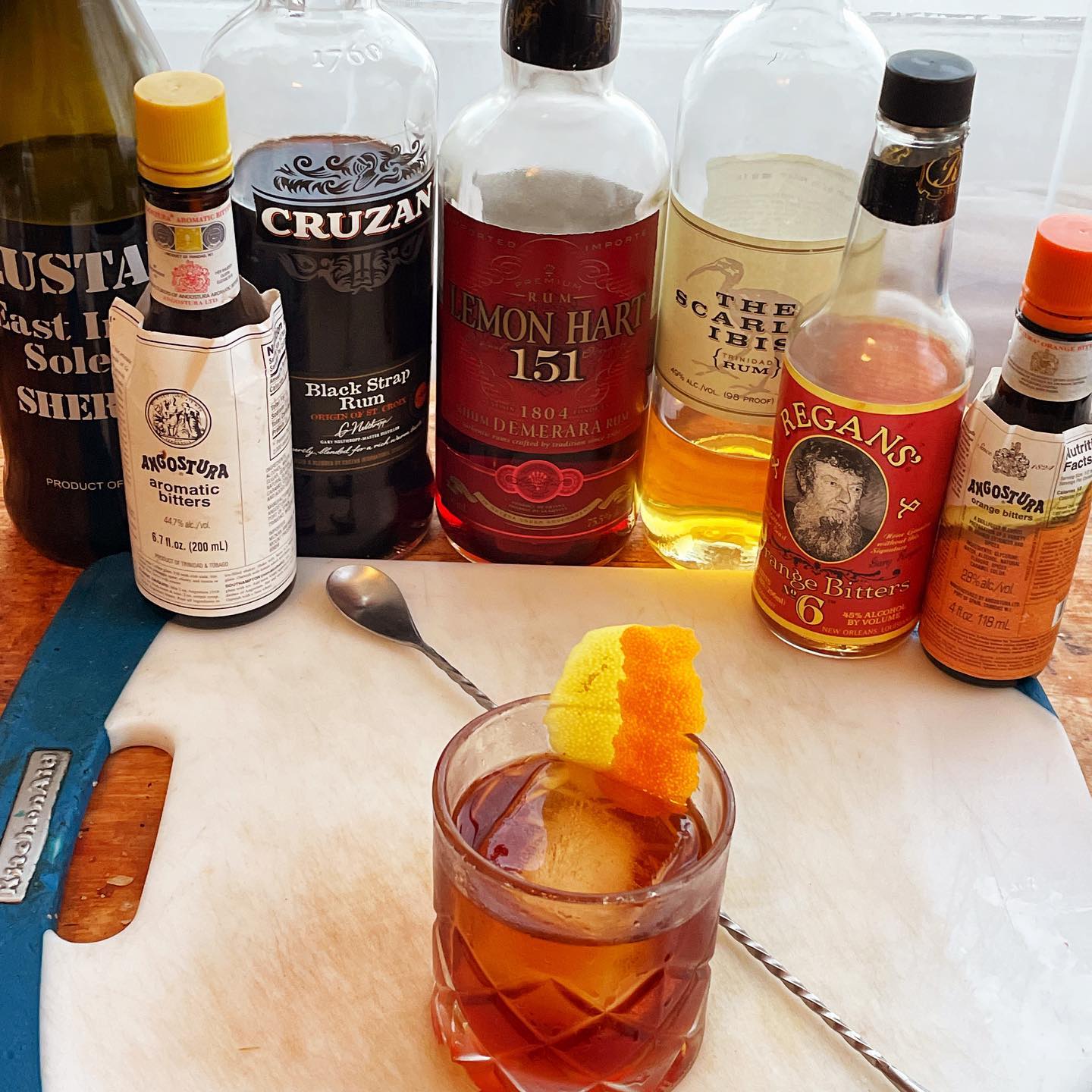 The blend of overproof Demerara, Aged Blended Trinidadian, and Blackstrap rums creates a flavorful base with notes of molasses, caramelized sugar, vanilla, coffee, and aged leather. Additions of blended sherry and rich simple syrup add notes of toffee and a hint of rum raisin while the bitters add notes of citrus peel and baking spice that help round out the drink