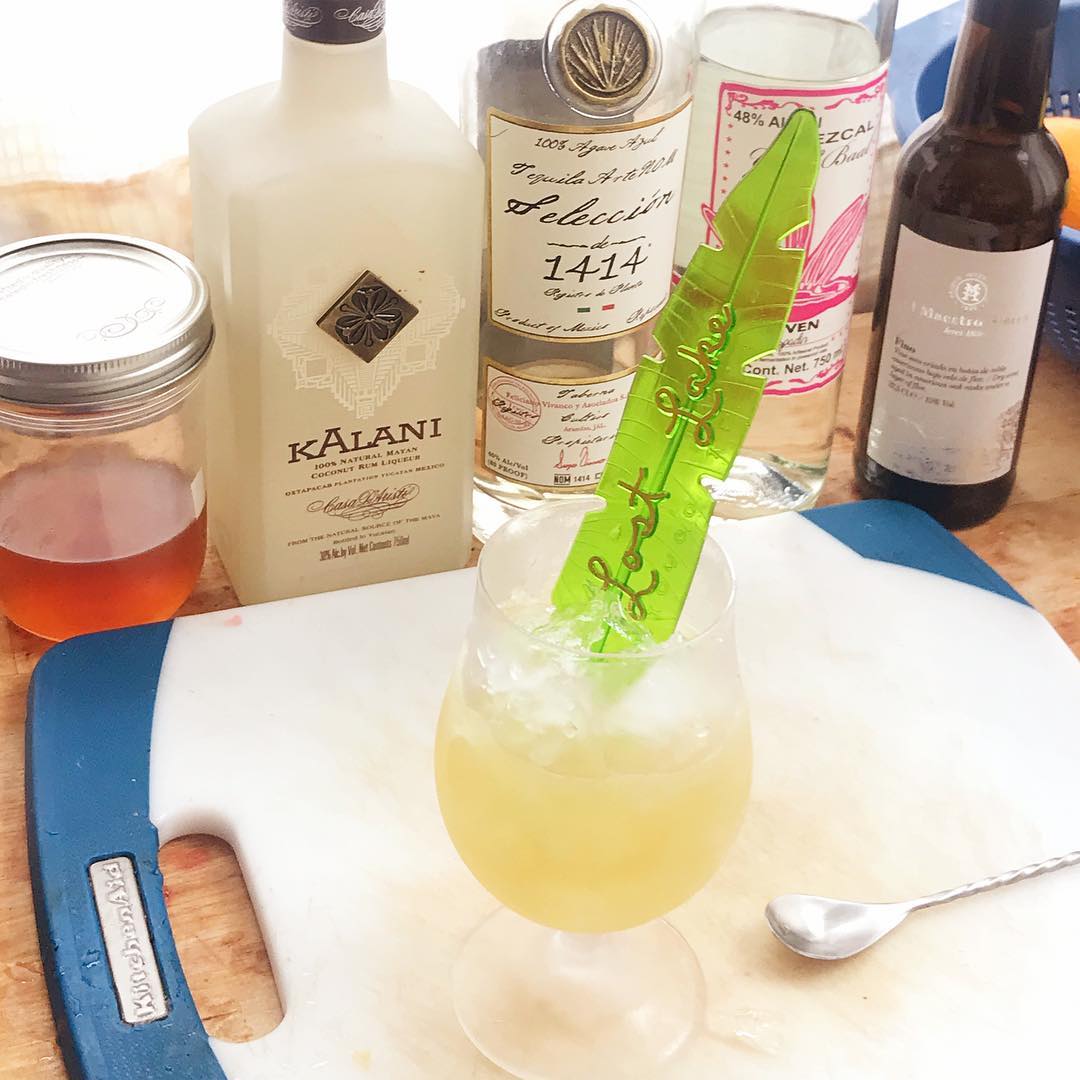 The combination of honey and coconut lends a multi-layered sweetness to the drink that, when combined with the dry, nutty accents from the Fino sherry lingers after each sip. The mezcal gives a hint of smoke while the aged tequila gives a nice base and the lime lightens things up
