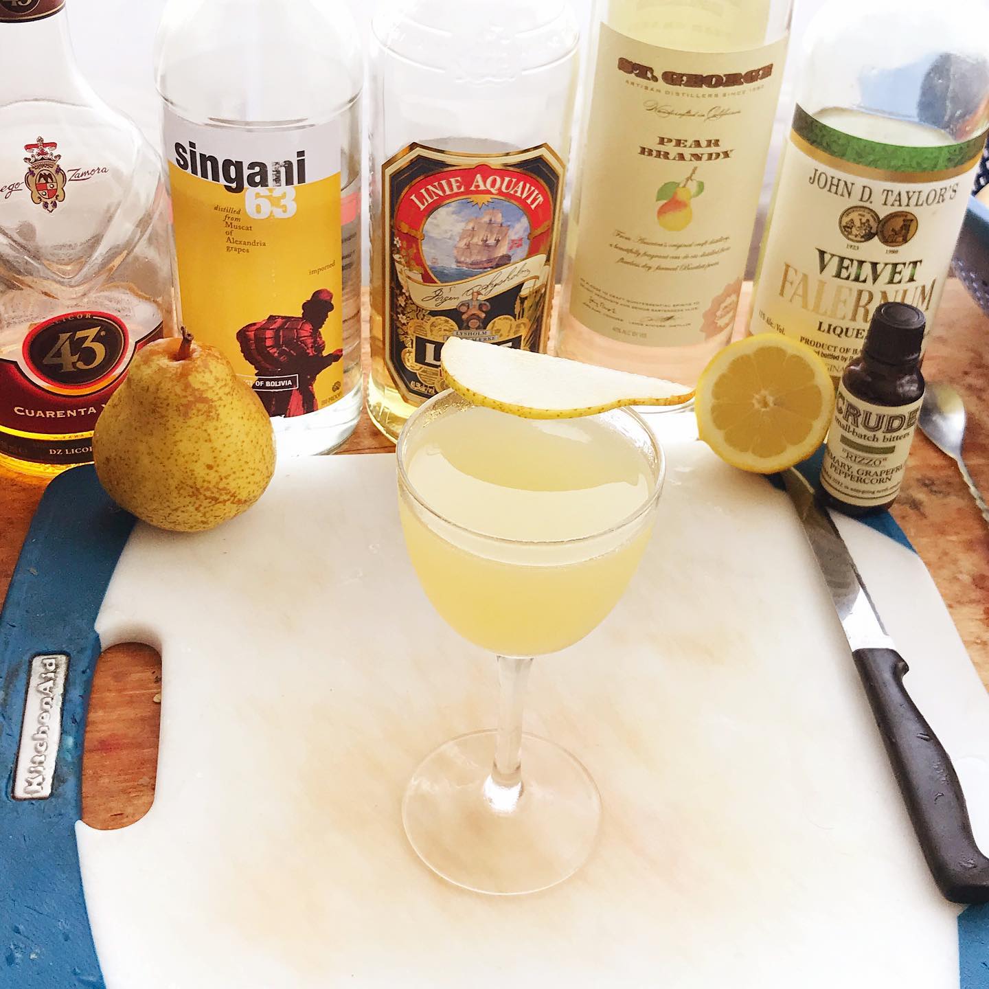 An elegant, yet fully flavored Daiquiri/Sour riff that highlights the delicious floral sweetness of ripe pears 🍐
