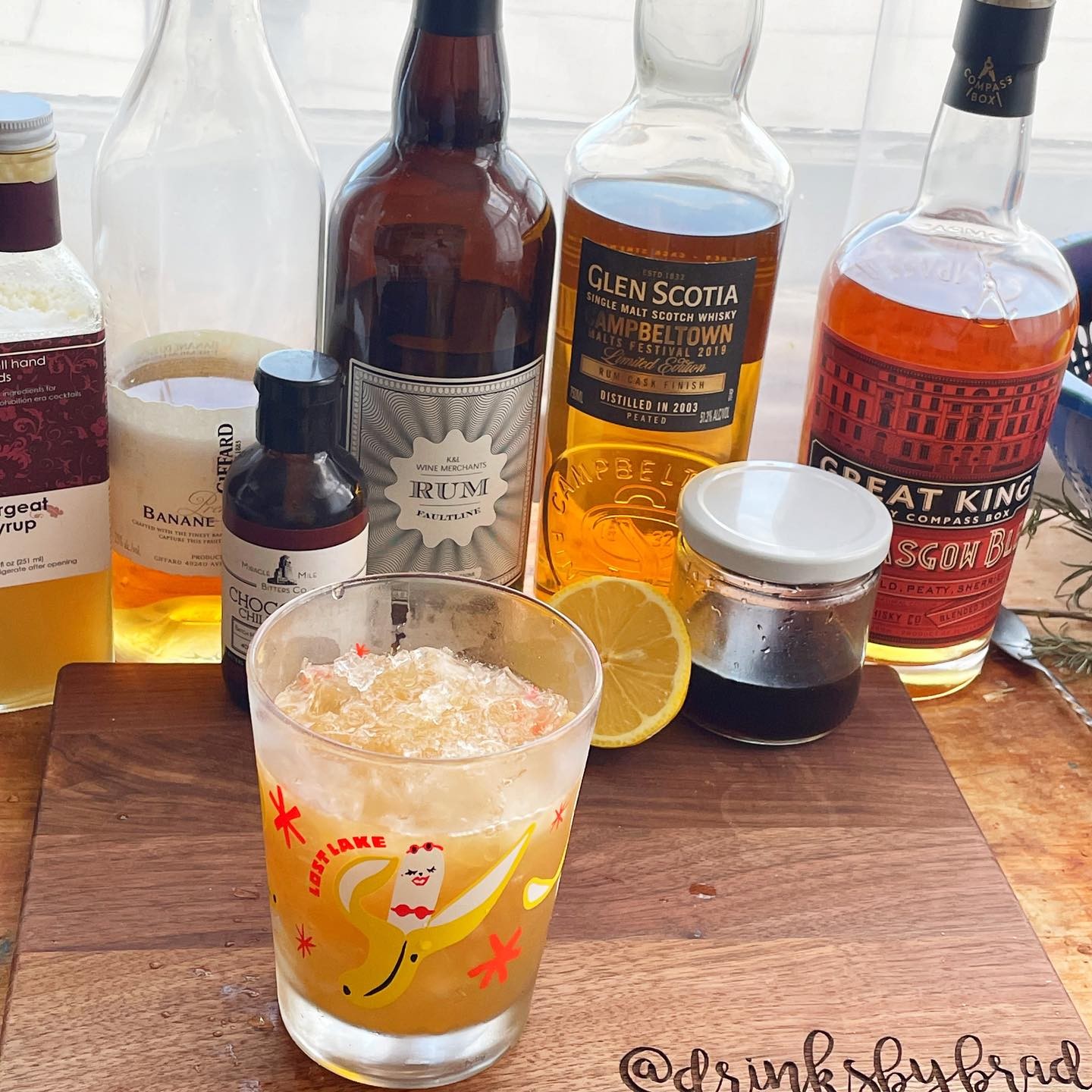 A boozy and bold Mai Tai riff with notes of roasted banana and baking spice inspired by the gone (but not forgotten) great bar, Lost Lake🍹🍌🍯🍫
