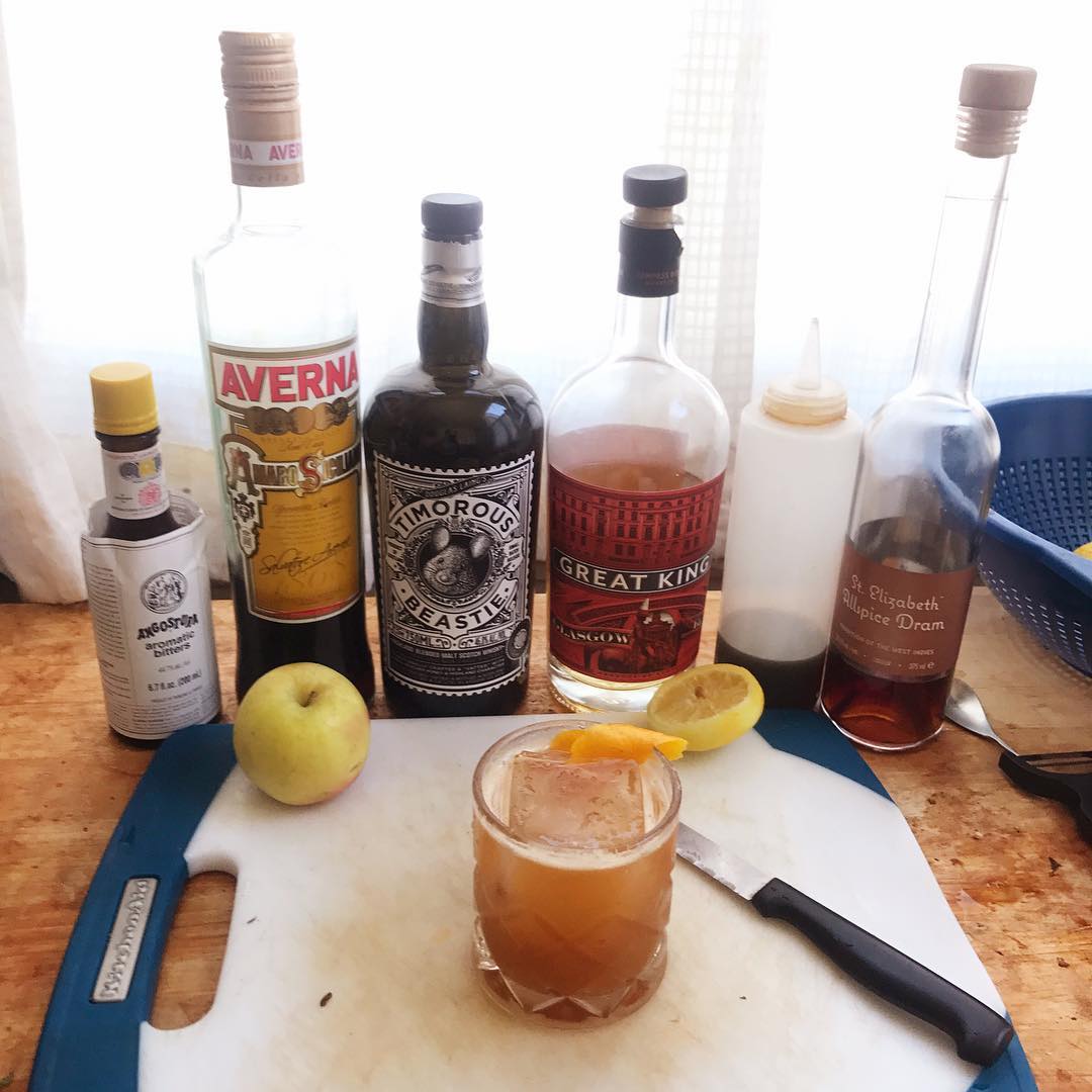 Rich simple syrup, a spiced Amaro, and allspice complement the sweet and earthy apple and the tasty malt