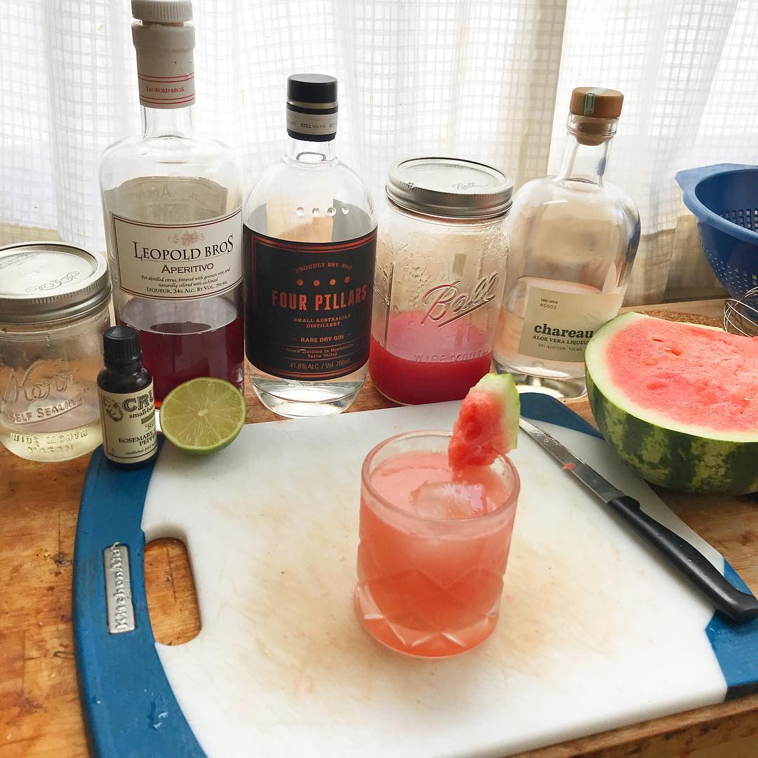 The botanical notes in the gin pair well with watermelon and lime while the Aperitivo lends a bittersweet background note and the cucumber/melon notes in the Chareau and the peppery, green undertones in the Serrano simple syrup yield a bright and fresh overall drink