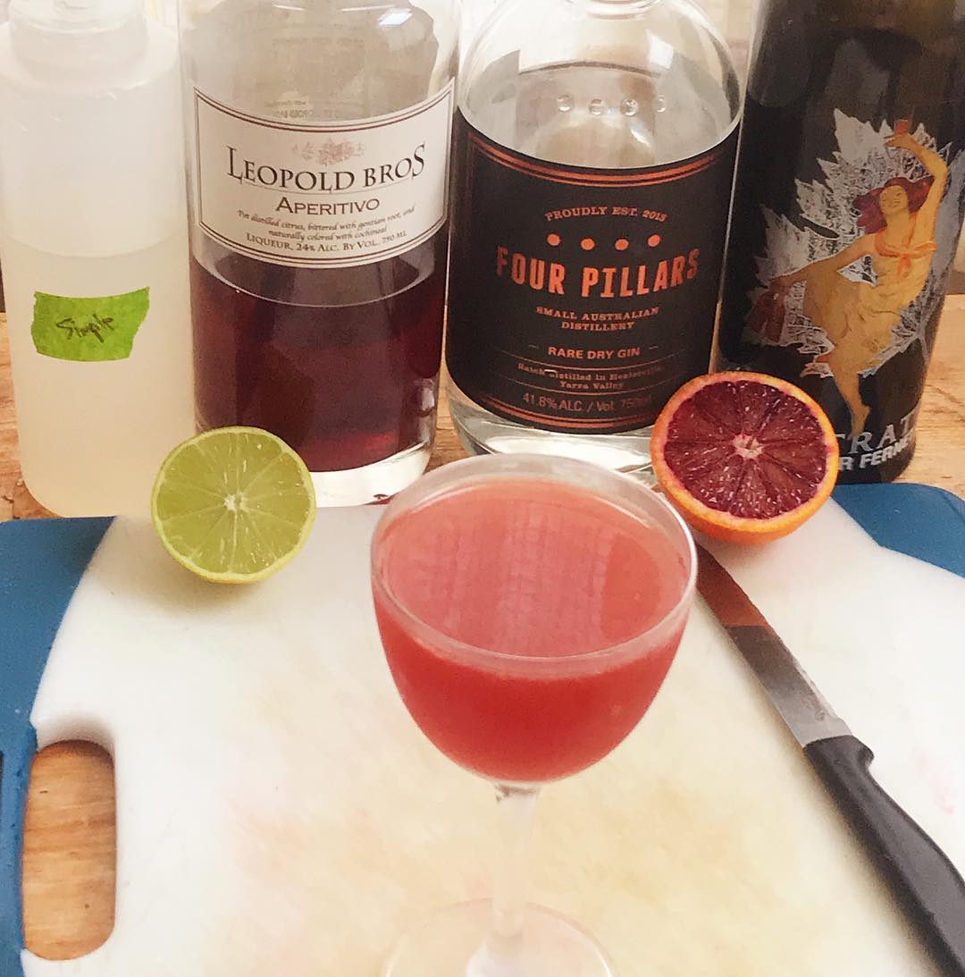 Barspoon red aperitif of choice (Campari, Leopold, St George Bruto, etc; not needed if using blood orange liqueur)