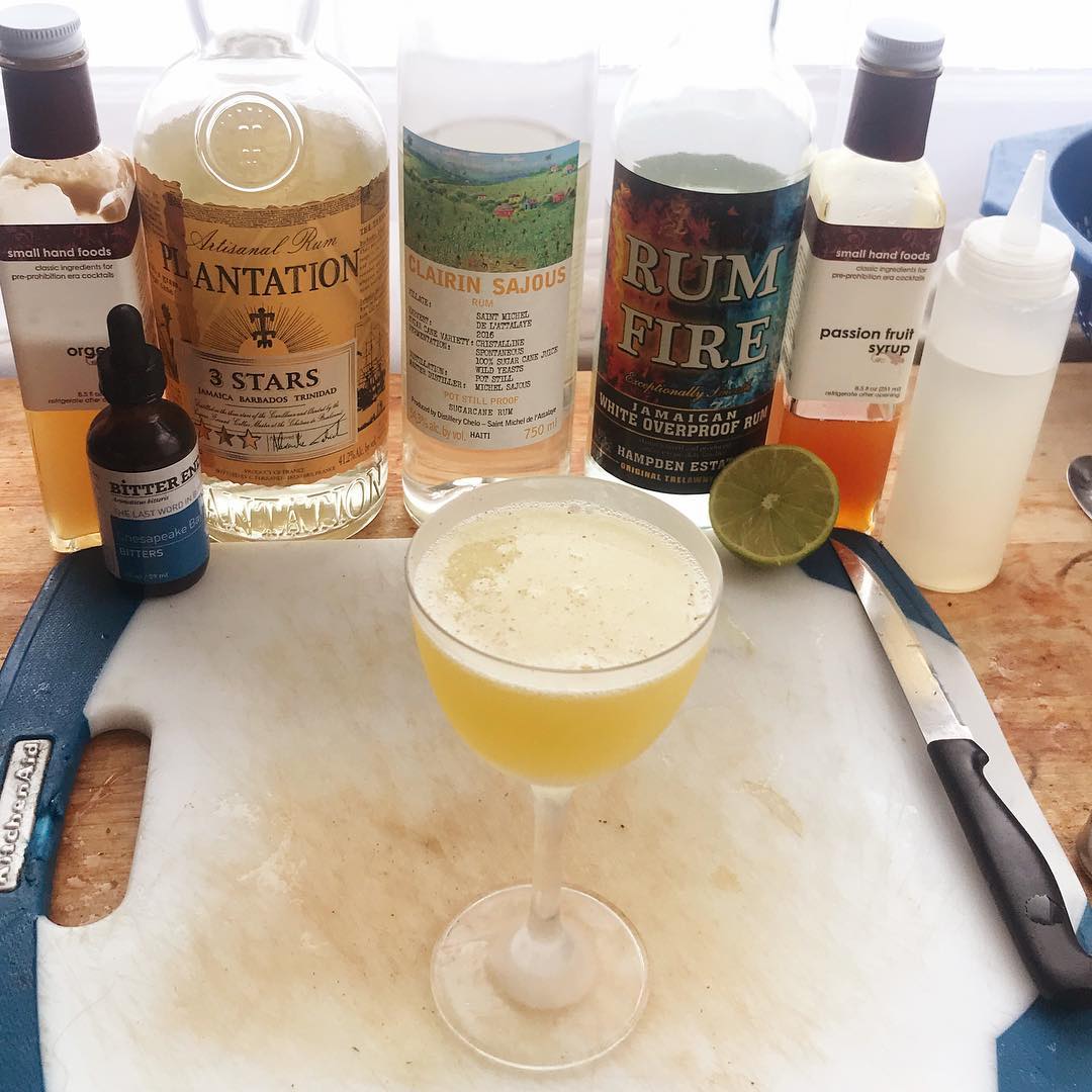 The ripe banana and pineapple aromas from the high-ester, Overproof Jamaican rum complement the grass and sugarcane notes in the clairin. The passionfruit syrup gives a nuanced sweet/tart flavor that works well with the lime while the bit of orgeat adds a hint of nuttiness
