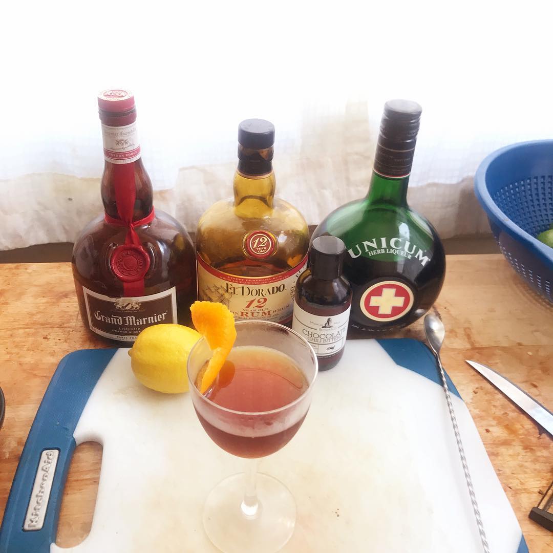 After noticing that the combination of Zwack and Grand Marnier had a caramelized sugar with orange zest flavor, I thought these could work well with the molasses and vanilla notes in aged rum. Adding a trace of lemon juice brightens up the edges