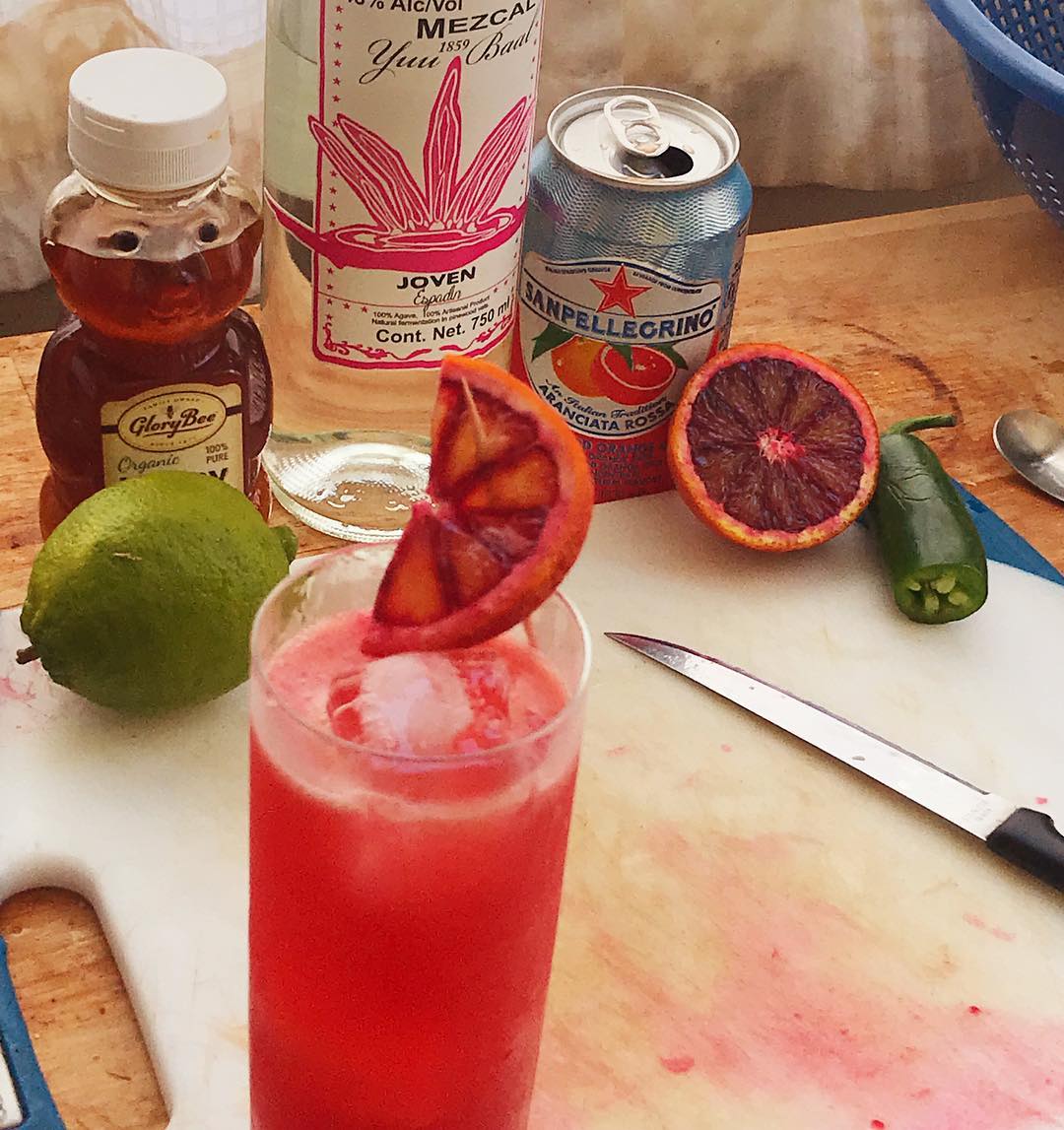The slight smoke from the mezcal works really well with fresh orange, honey, and bit of spice from the jalapeño while the soda topper lightens the drink and lends bubbles