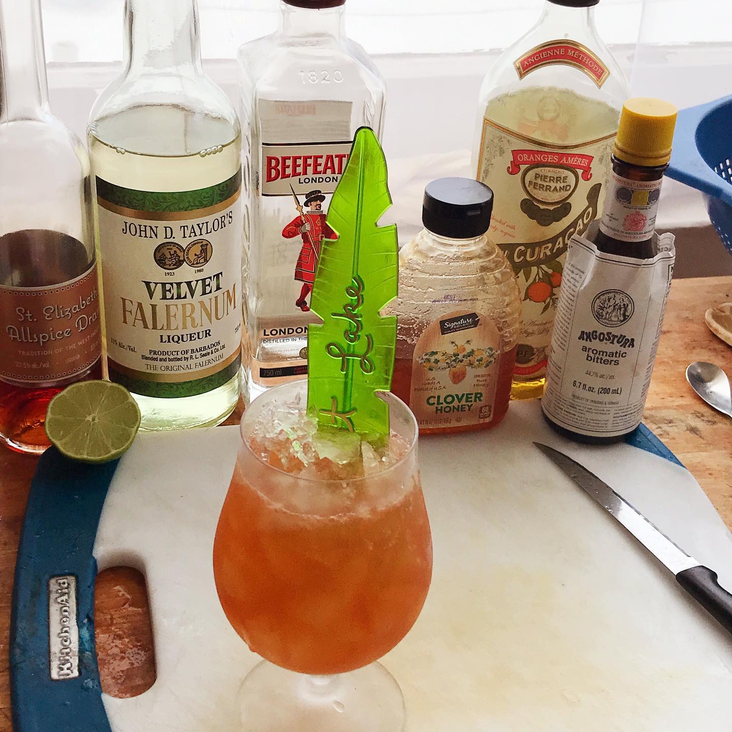 A bright, spiced tropical Gin drink that is one of the classics from outstanding Chicago tiki bar Lost Lake šš¦š¹ The combination of the clove and lime zest-forward Falernum, the allspice liqueur, the orange zest notes of the curaƧao, and the honey syrup creates a spiced, nuanced sweetness that works very nicely with the juniper and other botanicals in the gin while the hefty amount of lime adds some citrus zip that balances the drink while the bitters boost the clove and allspice notes