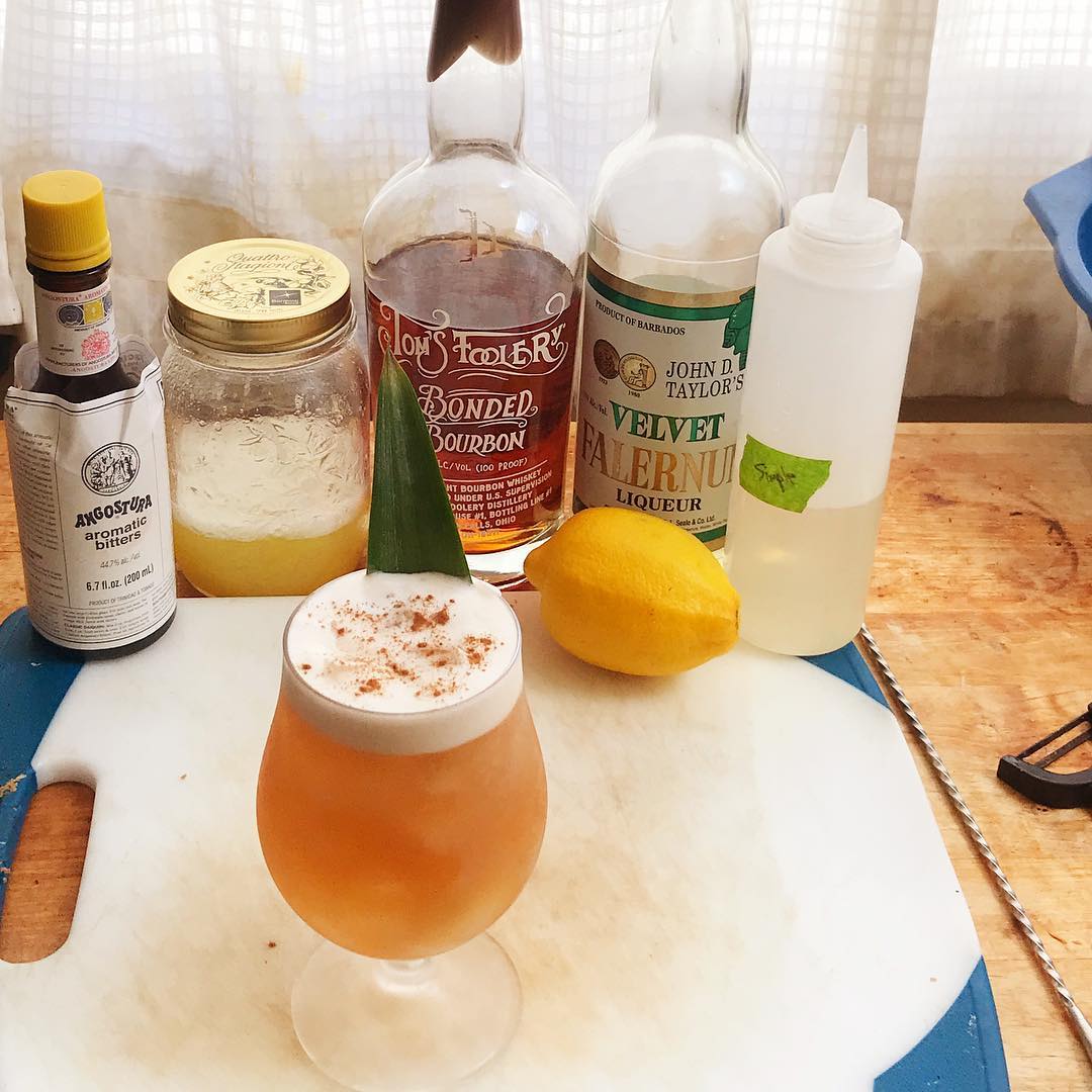 A bold, refreshing sipper that shows Whiskey knows how to join the Tiki party too π₯ππΉππΏ The cinnamon and oak notes in the high proof bourbon and the clove and Allspice from the Falernum and Angostura add a nice spice that complements the pineapple and citrus