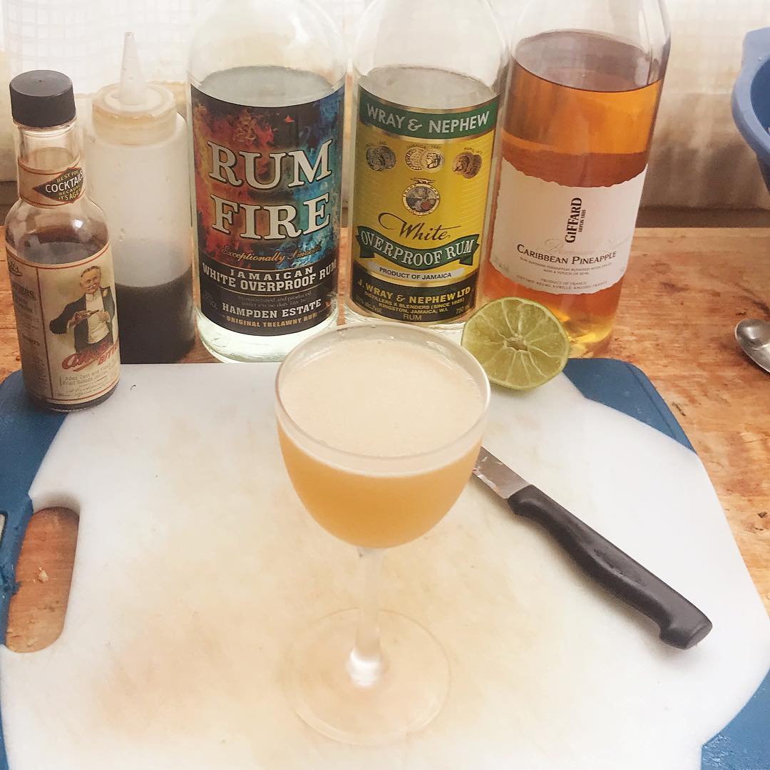 2 oz Overproof Unaged Jamaican Rum (I split mine with my two favorites in the category at a ratio of 3 parts J Wray & Nephew to 1 part Rum Fire to add layers of flavor/aroma)
