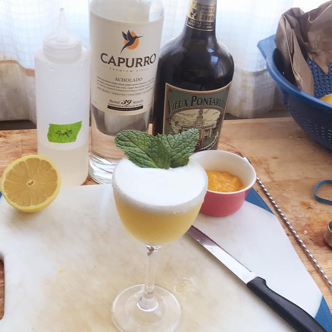 The mango purée adds intriguing flavor to the usual lemon, the pisco lends its usual floral nuance, and the bit of absinthe and mint garnish bring additional pleasing aromas to the classic sour