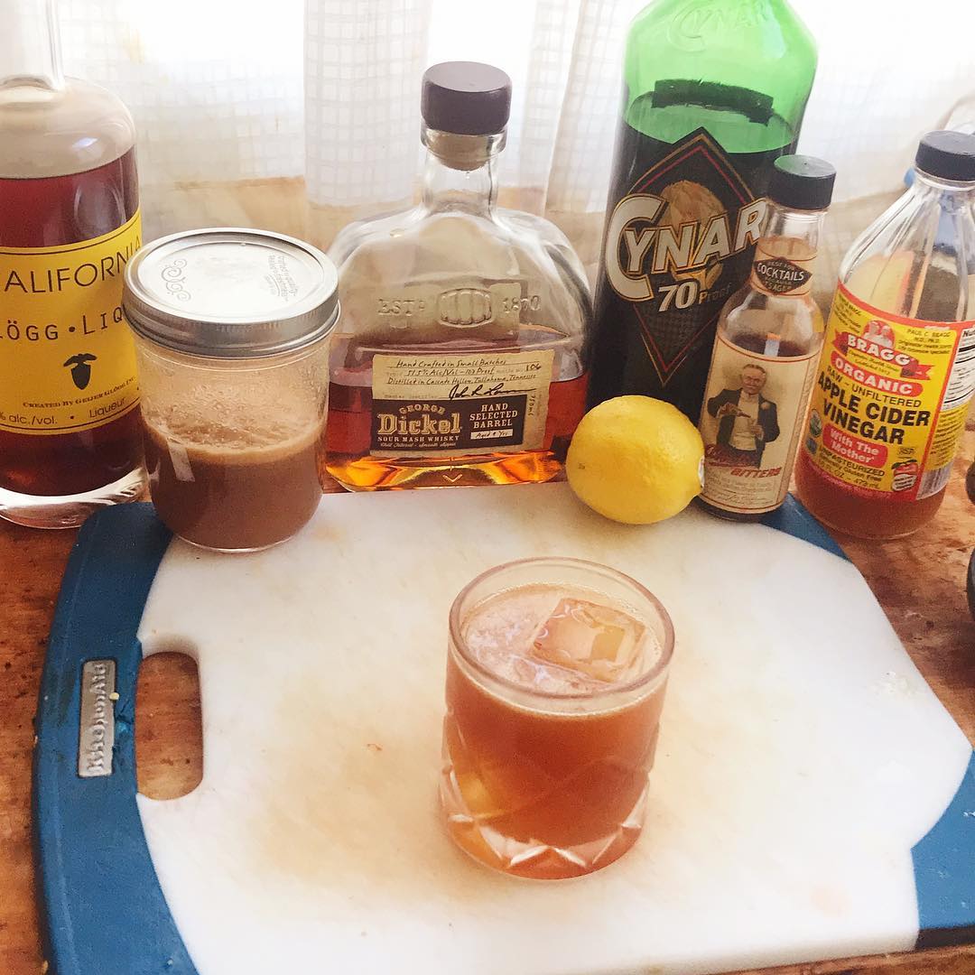 A bittersweet, autumnal riff on a Whiskey Sour that would make a great aperitif ahead of a fall/winter dinner 🍎