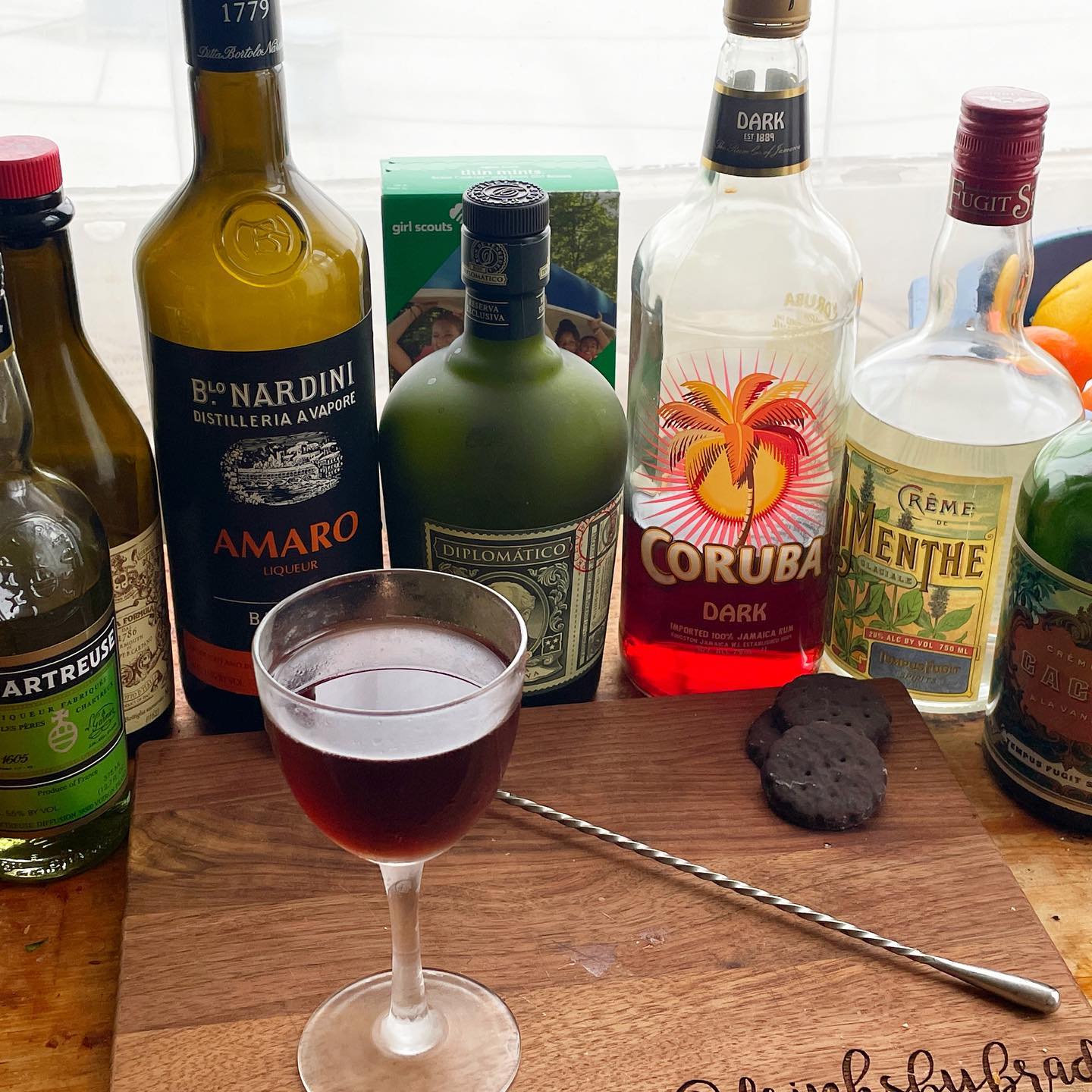 A rich, bittersweet Rum Manhattan riff inspired by Thin Mints that is meant to pair with its namesake cookies 🥃🍪