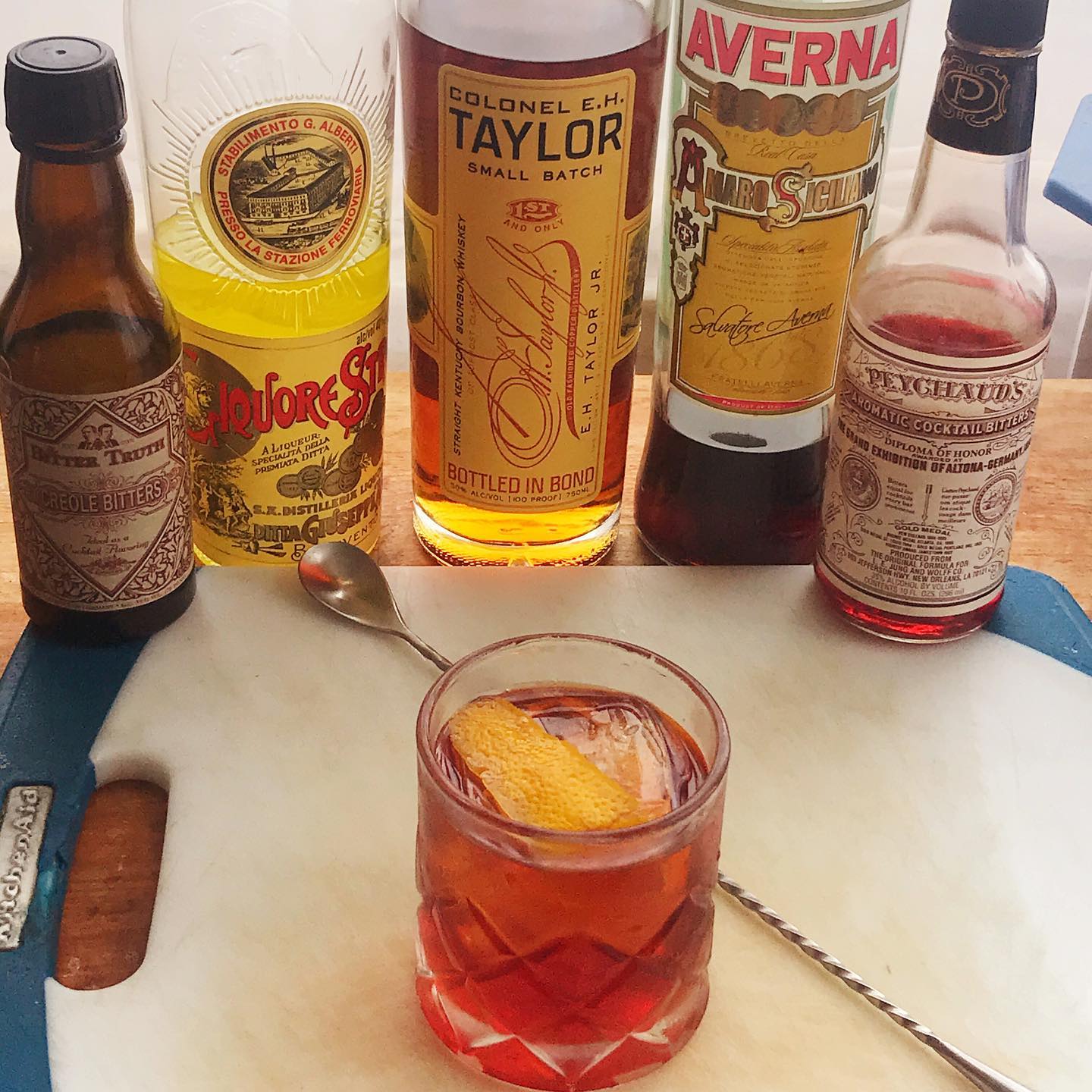 The cinnamon red hots, caramel, and vanilla notes in the bourbon work nicely with the cola and bittersweet orange peel notes in the Averna and the saffron/honey/subtle anise notes of the Strega. The Peychaud’s bitters bring additional notes of floral/anise and cherry notes (and a pleasing reddish hue). Best enjoyed while listening to music from the drink’s namesake (Dr. John)