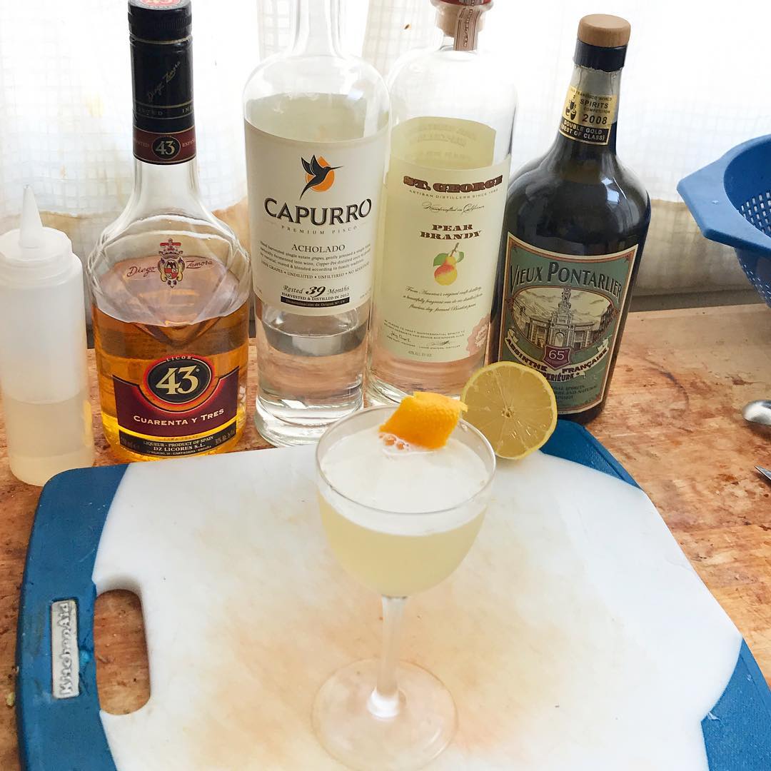 The soft, floral Pisco is a wonderful foil for the robust fresh pear flavor in the brandy while the lemon adds acidity and freshness and the vanilla-forward Liqueur is a great flavor accent that also ties everything together