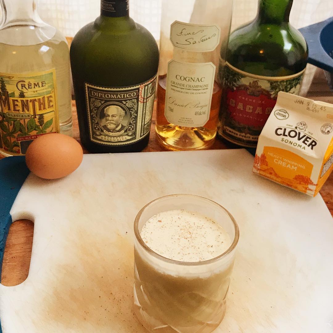 A comforting, satisfying winter eggnog riff from Tom Macy of Brooklyn’s Clover Club that is perfect for sipping by the fire after dinner or apres-ski ❄️ The two winter flavors of peppermint and chocolate standout while the split rum and cognac provides a sturdy base with a few notes of molasses and subtle fruit and the egg and cream provide the classic richness needed in a flip/eggnog