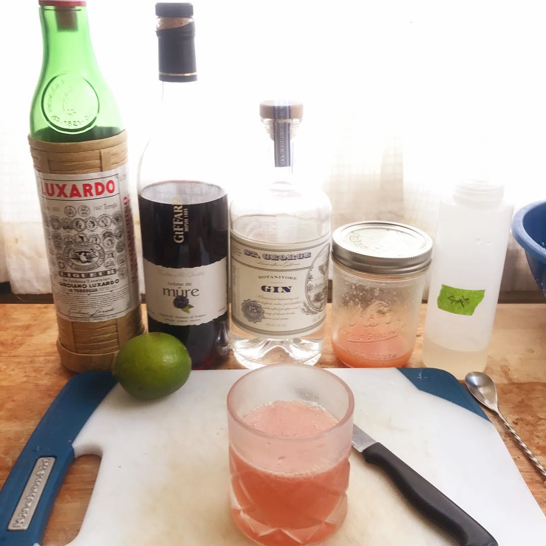 The funky cherry and blackberry liqueur give interesting depth and play nicely with the botanicals in the gin while also softening the citrus notes a bit