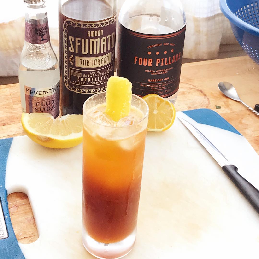 The citrus brightness of fresh grapefruit and lemon juice work very well with the lightly bittersweet rhubarb amaro with a bit of gin helping solidify the backbone and club soda providing effervescence