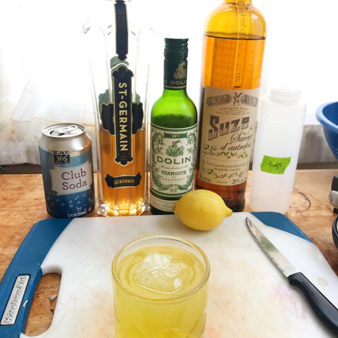 A play on a White Negroni with bubbles from Alex Day (this one for Nitecap in NYC)