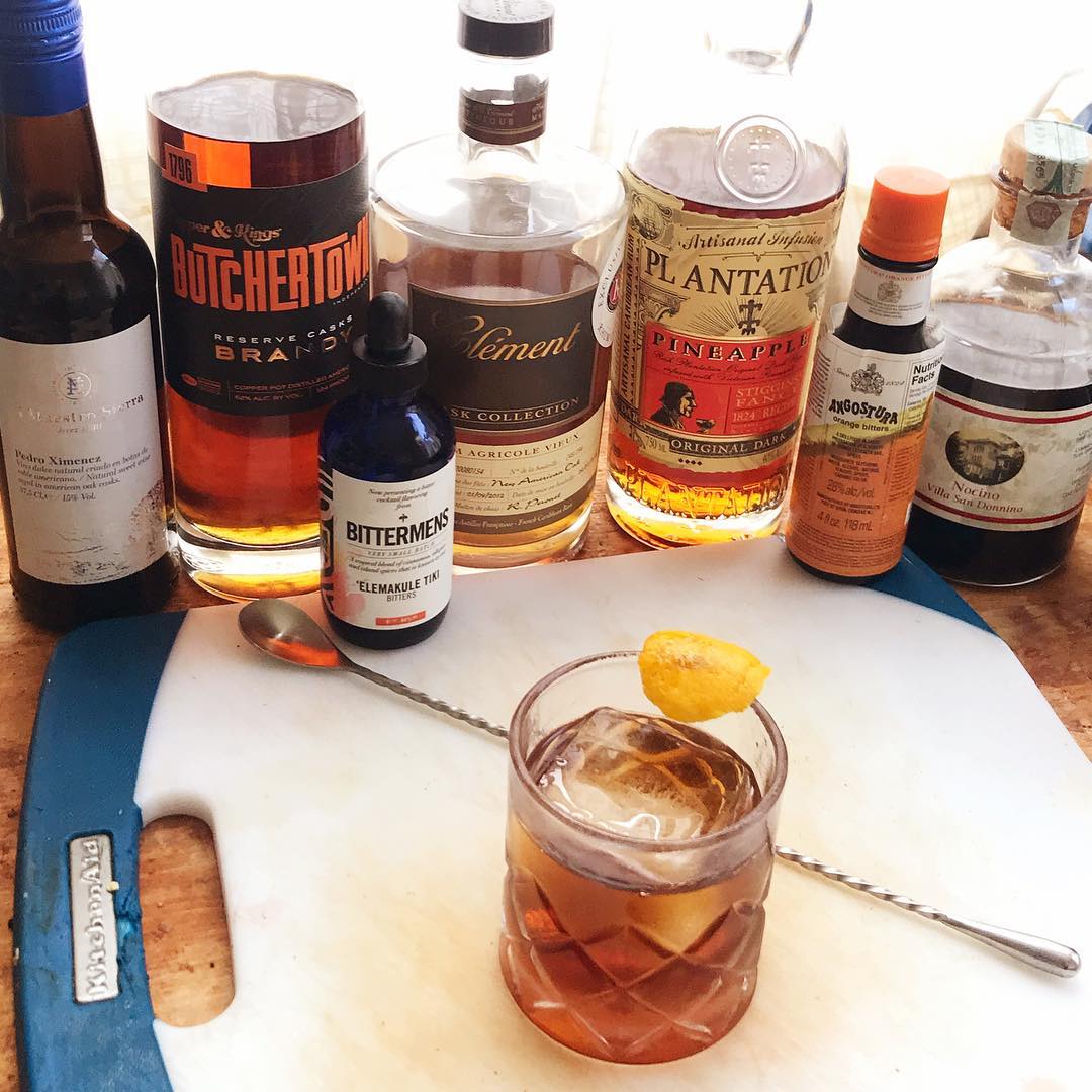 .5 oz Plantation Stiggins’ Fancy Pineapple Rum .25 oz Pedro Ximenez Sherry
