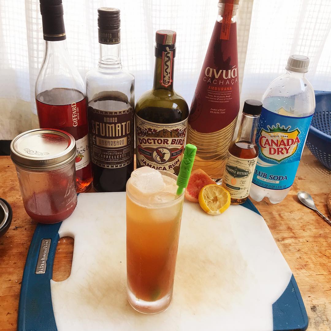 A Daiquiri/Fizz variation that works in rhubarb and strawberry 🍓 inspired by the Cane Jane at PCH in SF