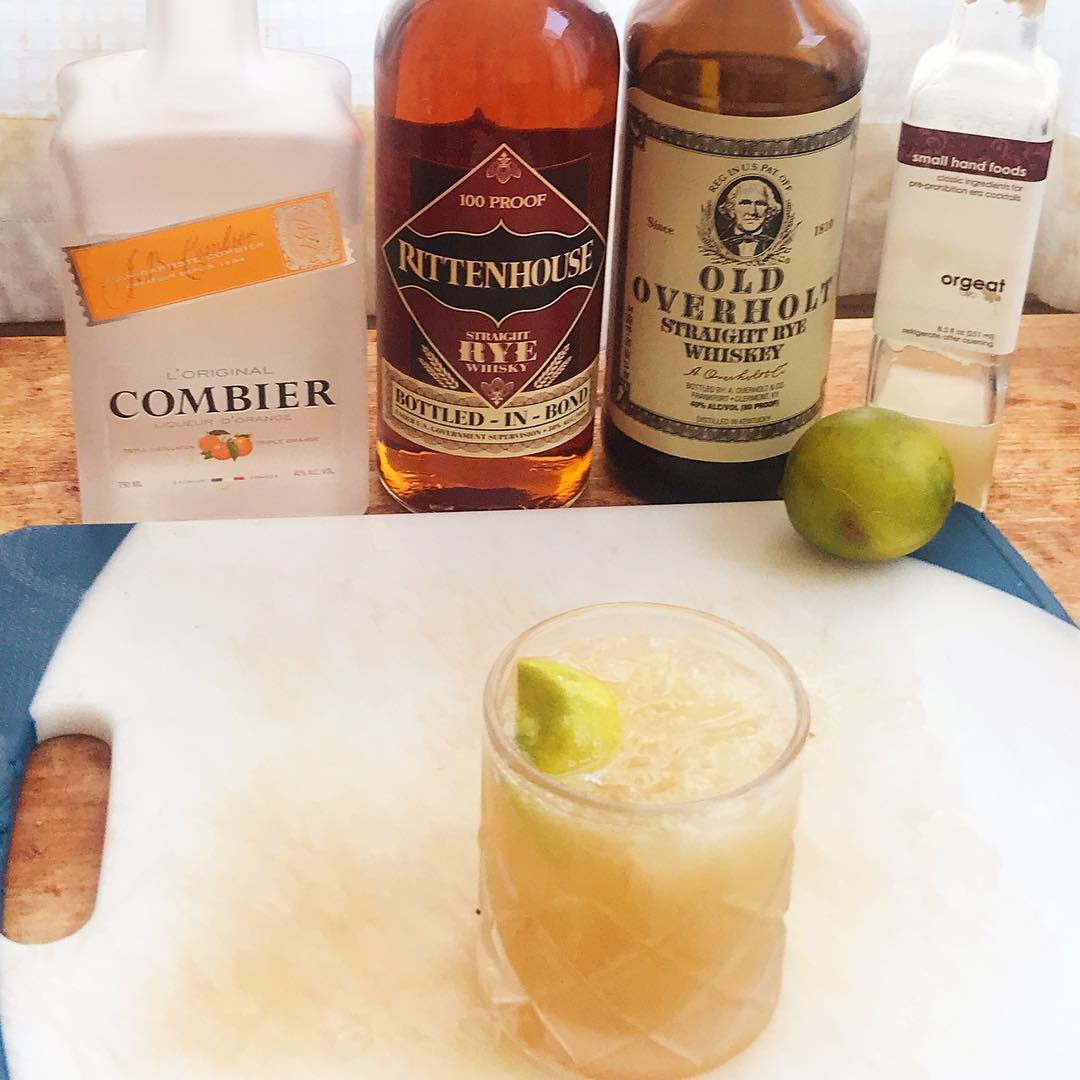 The black pepper and slight cinnamon spice of the Rittenhouse and the dusty, nutty floral Old Overholt work well with the lime, orange, and almond sweetness of the Orgeat. Great for a warm afternoon or early evening