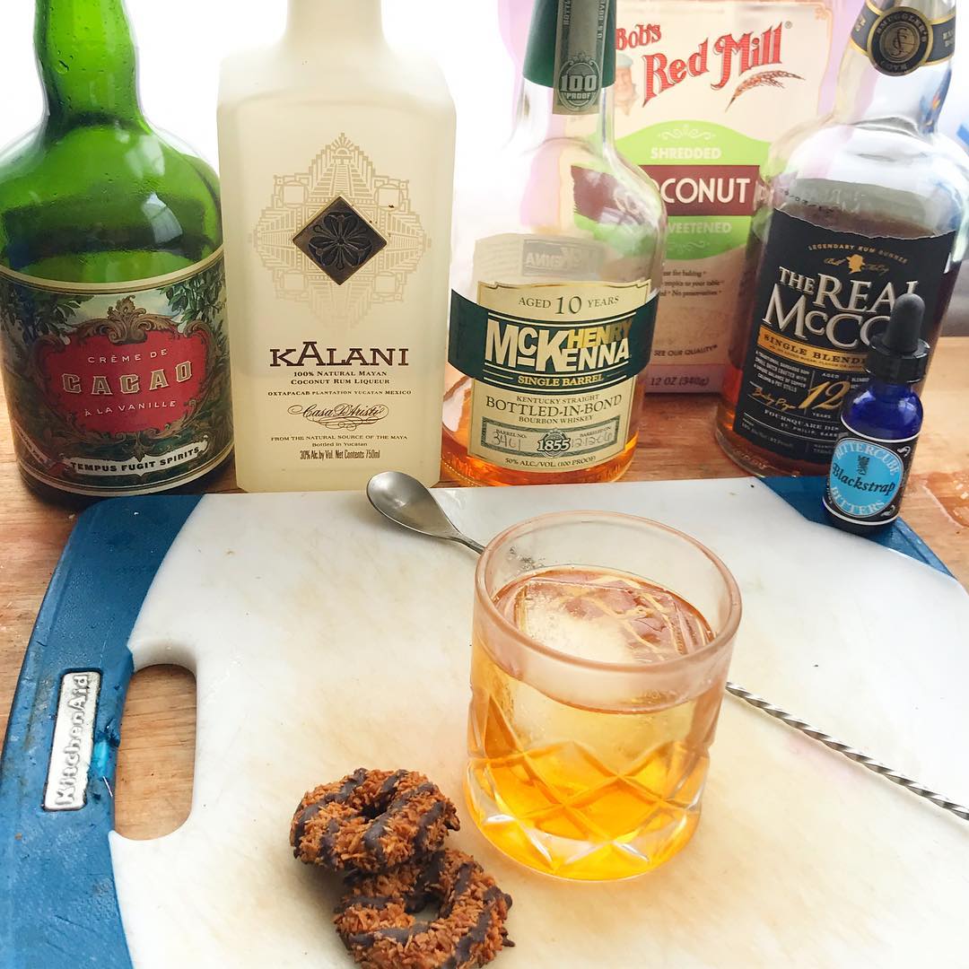 A delightful Old Fashioned riff that was designed to have flavors that pair with my personal favorite Girl Scout cookie, the Samoa 🍪