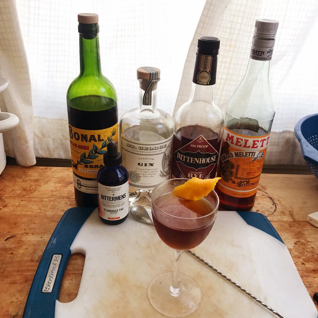 .75 oz Bonal (French aperitif with bitterness from quinine and gentian along with orange peel notes)