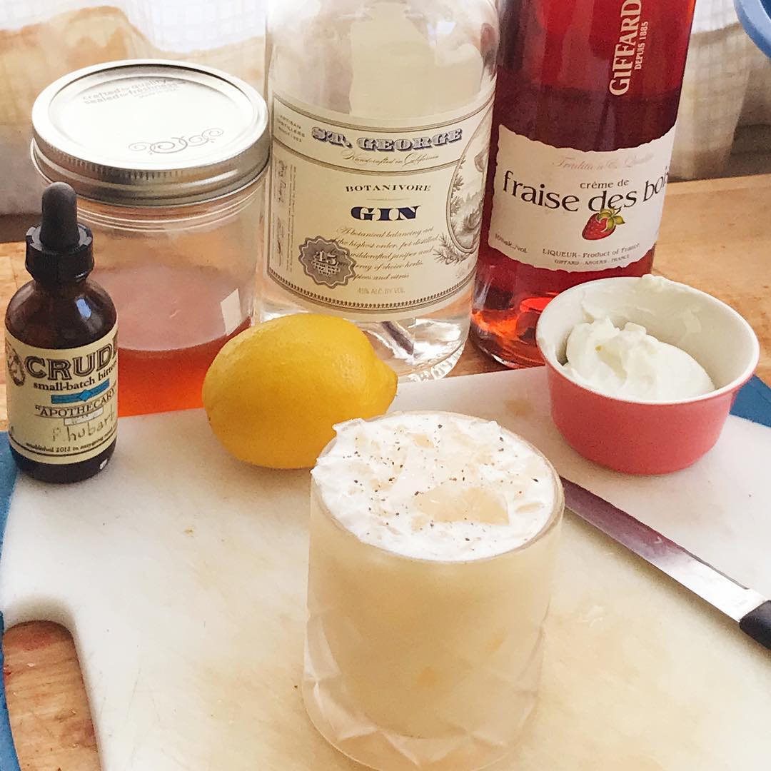 The botanicals in the gin work very well with the strawberry and lemon while the honey syrup gives a sweet depth and the bit of creamy, tart yogurt adds great texture