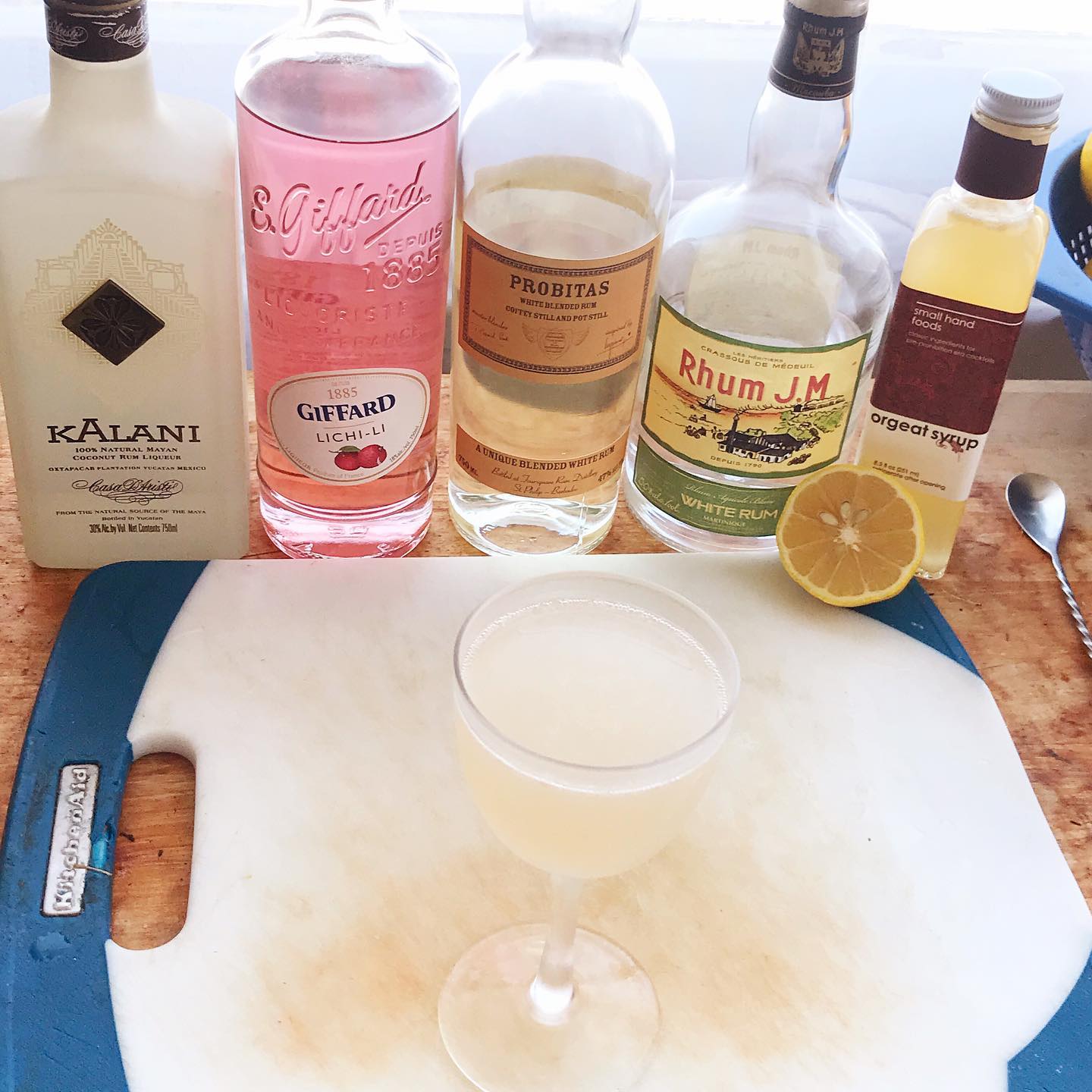 The nuanced apple/pear/floral and more flavor of the lychee is highlighted by undergirding with some complementary flavors of almond and a splash of coconut. The blend of rums provides a solid base with some undertones of grassy sugarcane and slight tropical fruit and the lemon brightens and lightens the drink