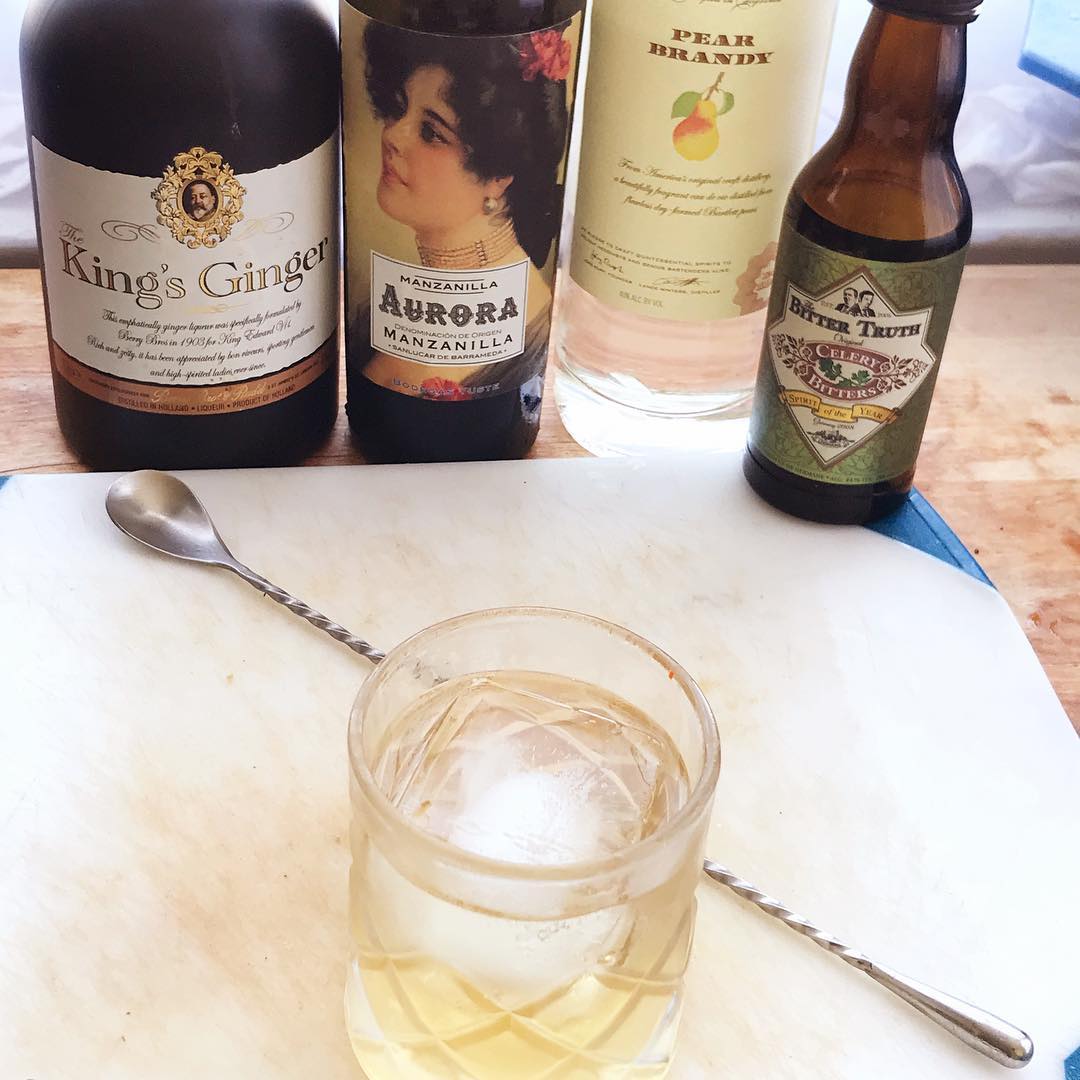 The dry manzanilla sherry brings notes of green apples and a touch of salinity that play nicely with the juicy ripe pear flavors from the brandy and are accented with some spice and herbal notes from the Ginger Liqueur and celery bitters