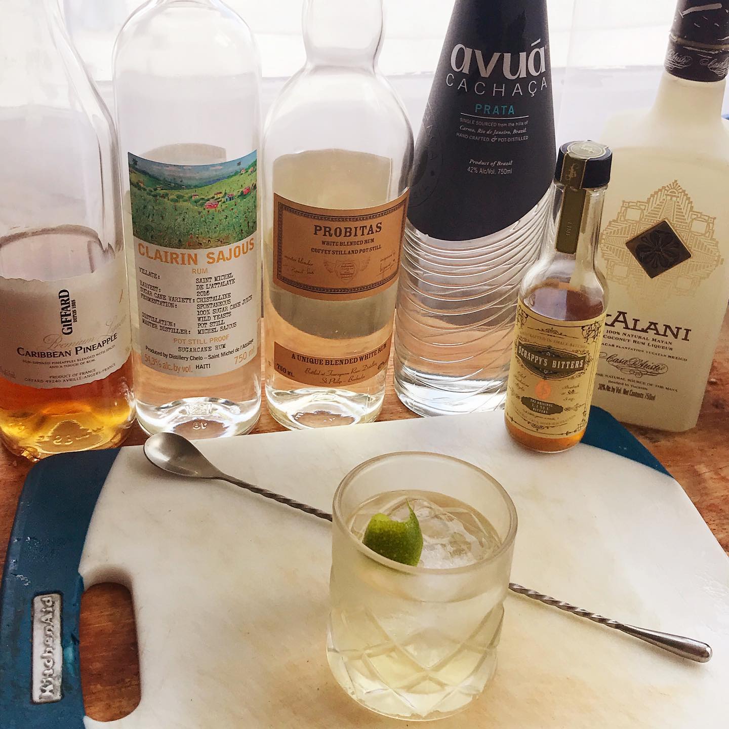 An elegant, yet tropical stirred pina colada riff 🥥🍍🏝 The blend of pot still rum with Haitian and Brazilian sugarcane spirits creates a base with notes of tropical fruit, lemongrass, and a hint of vanilla custard that works very nicely with the coconut and pineapple notes from the liqueurs. The lime bitters add a touch of citrus that is echoed by the essential oils from the lime twist