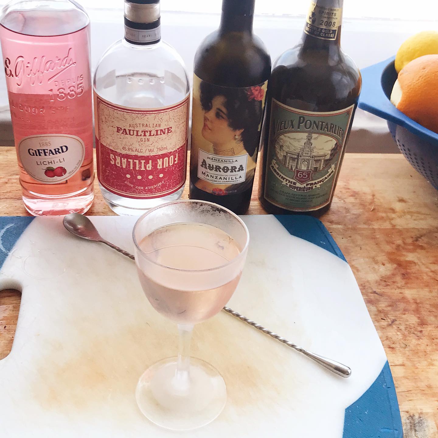 The bright, slightly floral fruit flavor of the lychee is highlighted without trodding into the territory of overly sweet, unbalanced late 90s Lychee-tinis by pairing with the dry, slightly savory Manzanilla sherry and it’s notes of green apple, white wine, and sea breeze as stand-ins for the component of the drink typically occupied by vermouth. Choosing a gin like Four Pillars or Monkey 47 that have plenty of complex botanical notes without overpowering juniper leads to a very pleasant drink that works nicely in the dog days of summer. The tiny splash of absinthe ties all of the flavors together
