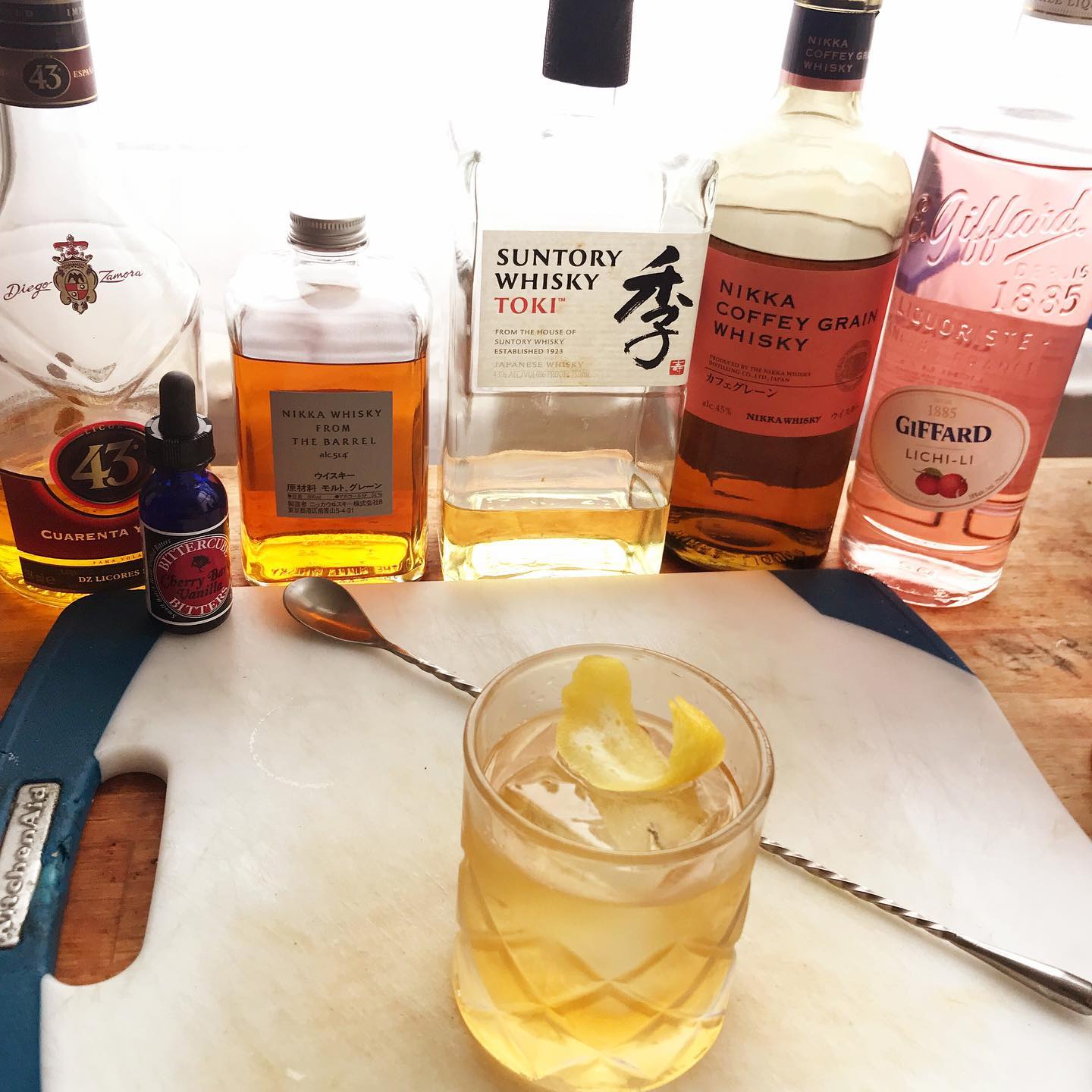 A refined yet flavorful Old Fashioned riff dedicated to the great Bill Withers (RIP) with notes of vanilla and cherry with a floral aroma 🥃🍒🌺 The blend of Japanese whiskies delivers a base with notes of pears, stonefruit, vanilla, and subtle notes of baking spice that work in delicious harmony with the fruit and floral notes of the lychee liqueur. The vanilla liqueur and cherry/vanilla bitters boost those notes while the essential oils from the lemon twist add a fresh citrus aroma as you sip