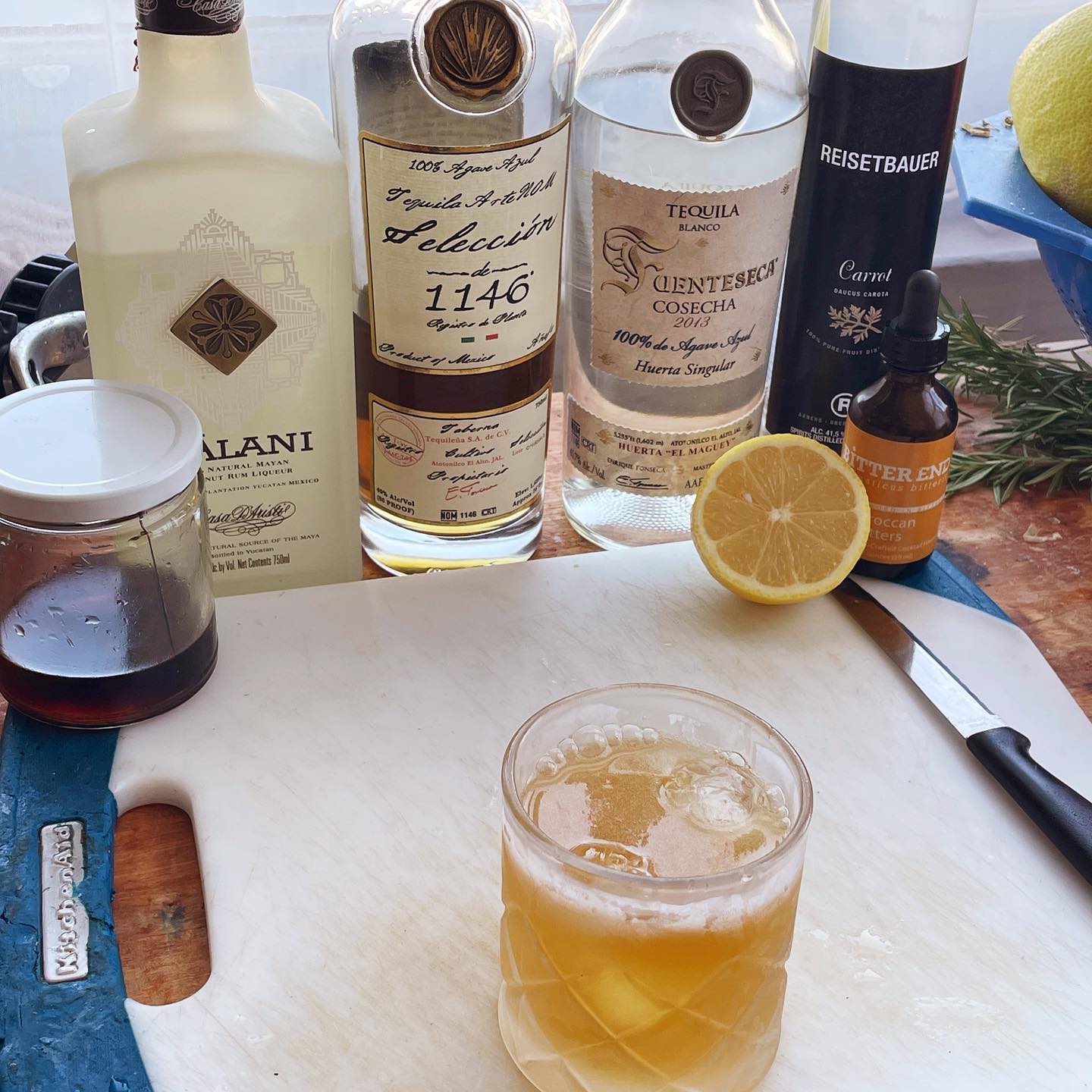 1 oz Anejo Tequila (Arte Nom, Siembra Azul Anejo, El Tesoro, etc)
