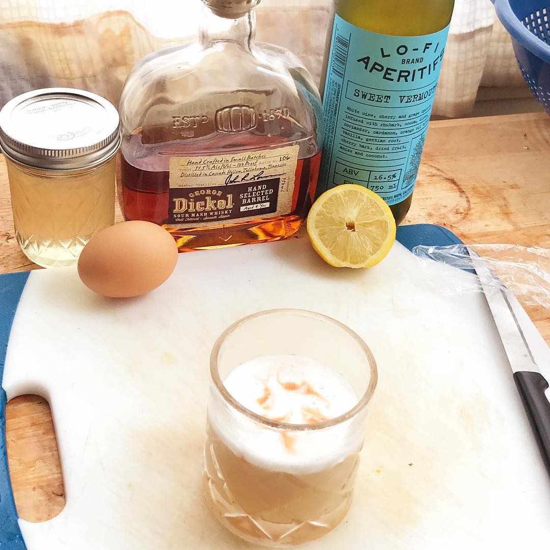 The dill syrup echoes similar flavor notes in the whiskey from Tennessee while the bit of elegant vermouth works with the egg white to soften the punch of the whiskey while slightly muting the tartness of the lemon