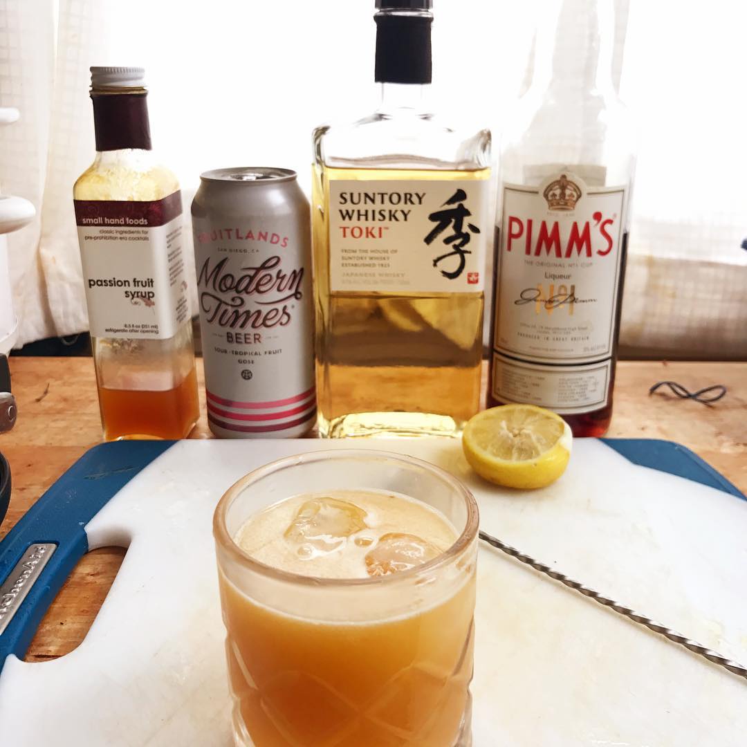 Continuing the theme of sharing summer favorites, here is a riff on a Pimm's Cup from Wm Mulherin's Sons in Philadelphia (incredible pizza/pasta here too!) Passion fruit and tart gose bring some intriguing flavors to the party to pair with tasty Japanese whisky and the spice/botanical notes in the Pimm's. Very refreshing
