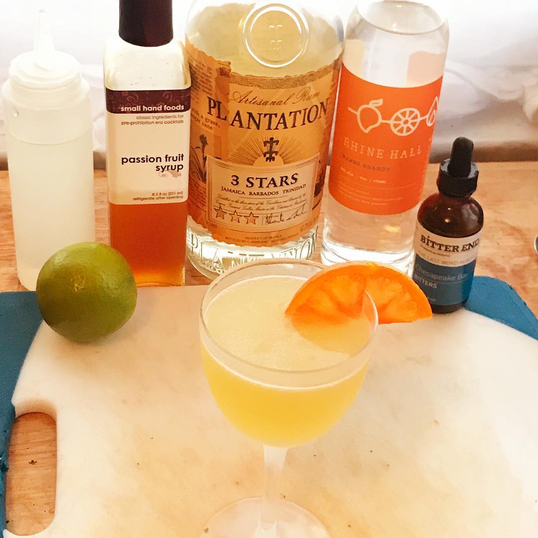 The bright, tropical aroma of the Mexican mangoes in the eau de vie work wonderfully with the multi-island rum while the passionfruit syrup lends a complementary, nuanced sweet/tart note, the bitters lend some black pepper and bay leaf spice, and the lime brightens the drink. Super delicious!