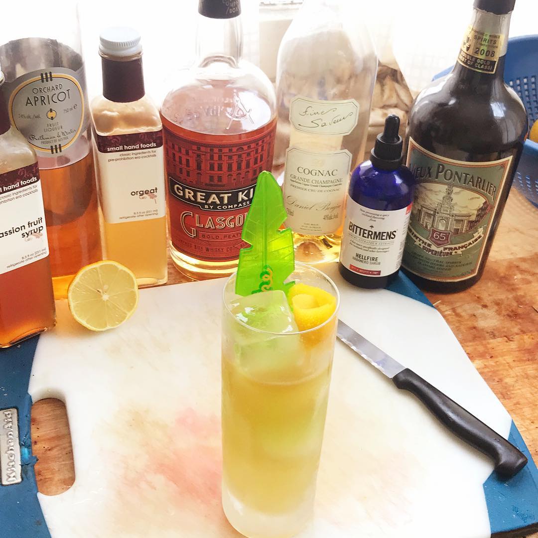 The honey and peat notes in the Blended Scotch are smoothed out by the juiciness of the Cognac and accented by notes of almond, apricot, the nuanced sweet/tart passionfruit, and citrus with a bit of a spicy kick provided by the Habanero Shrub