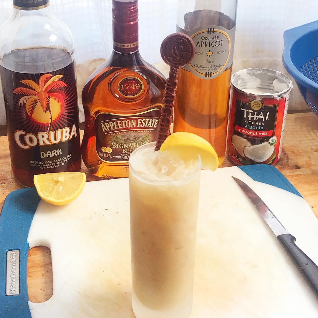 The dual Jamaican rums provide a nice base with molasses notes and aromas of pineapple and ripe banana that pair nicely with the coconut cream and deep sweetness of the apricot liqueur while the lemon lightens and brightens the drink