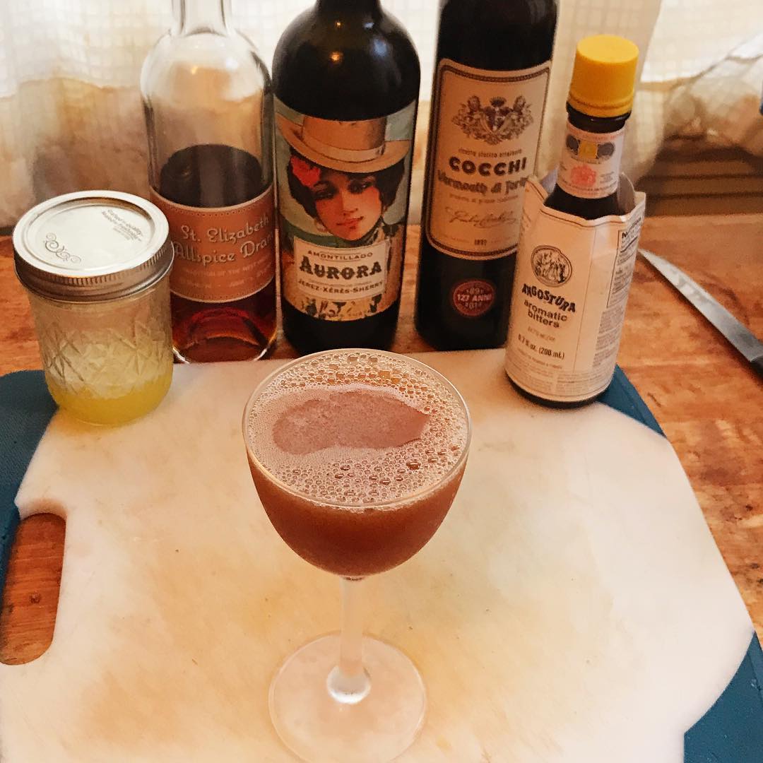 The tropical sweetness and acidity of the pineapple juice are complemented by the relatively dry, nutty Amontillado sherry while the Sweet Vermouth, Allspice Liqueur, and Angostura bring island spice flavors